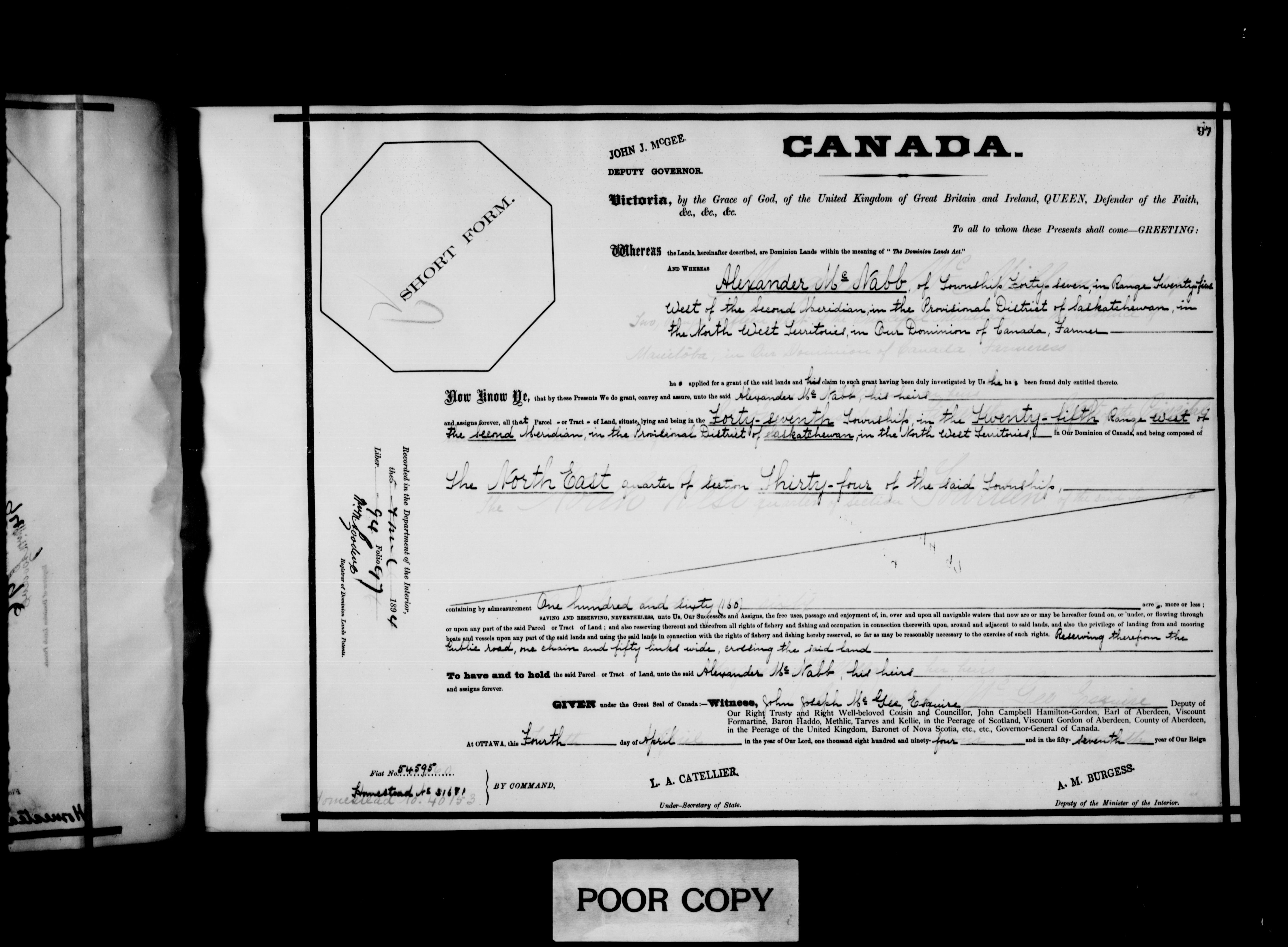 Canada. Department of the Interior : Letters patent : C-6010