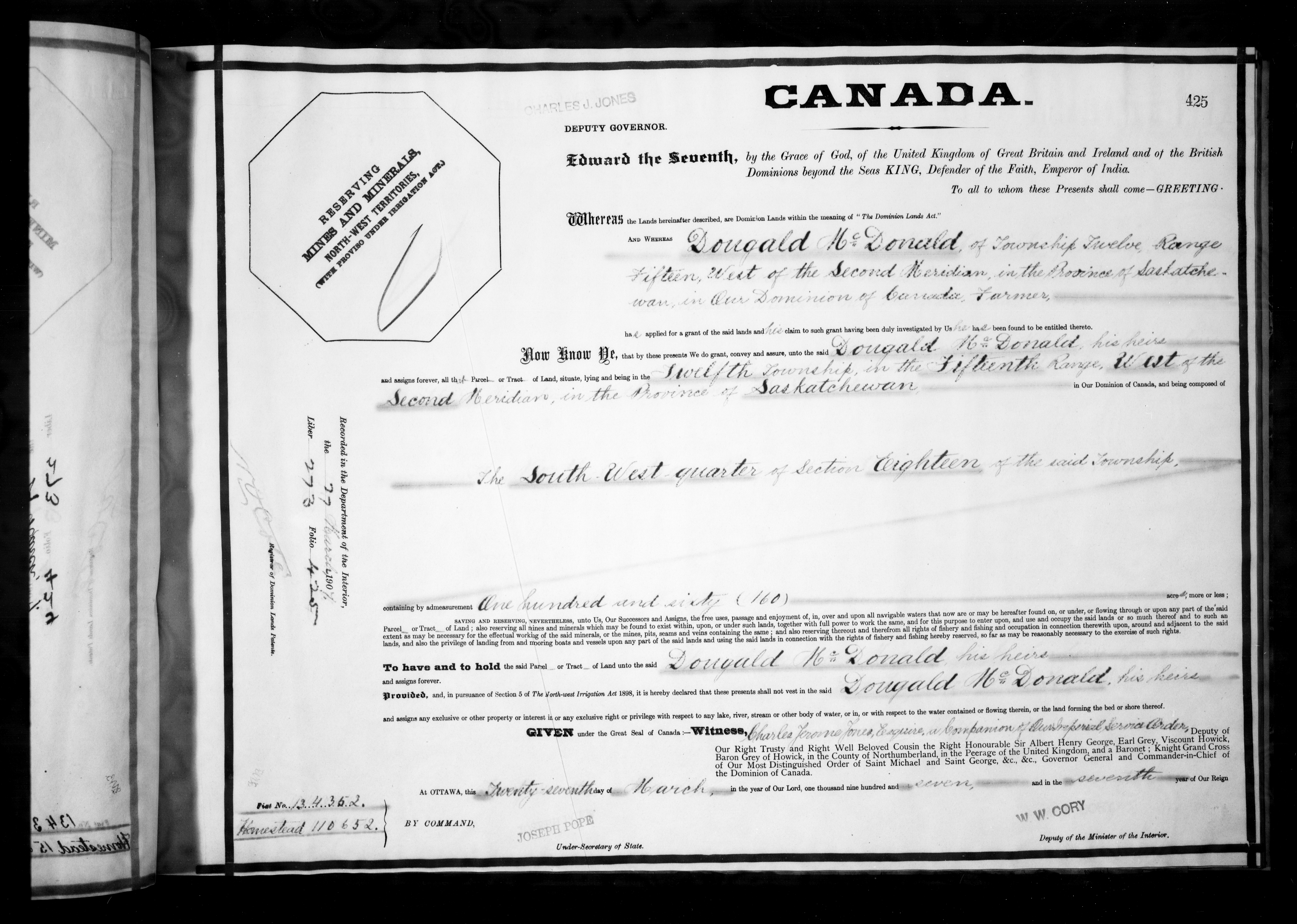 Canada. Department of the Interior : Letters patent : C-6150