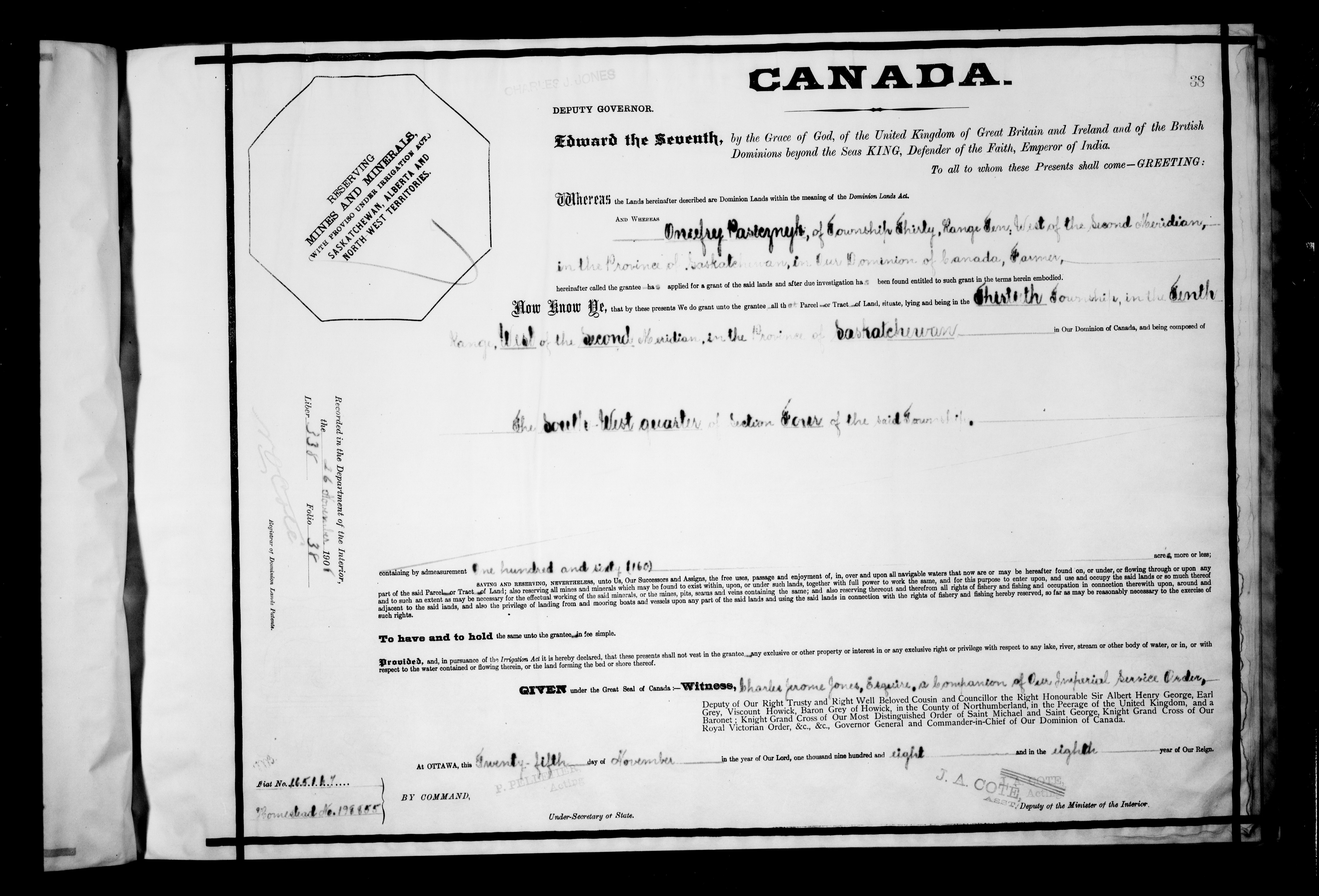Canada. Department of the Interior : Letters patent : C-6204