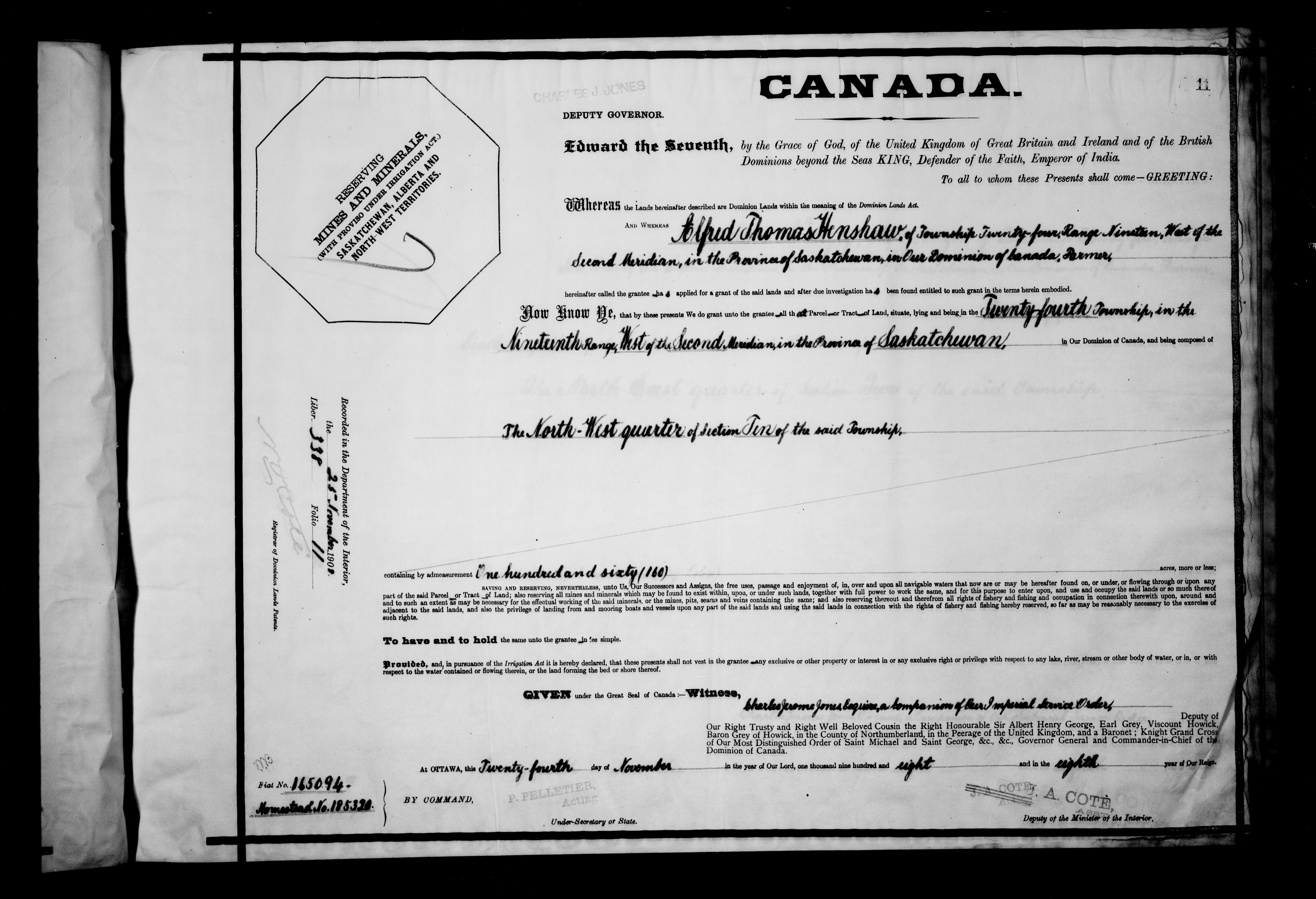 Canada. Department of the Interior : Letters patent : C-6204