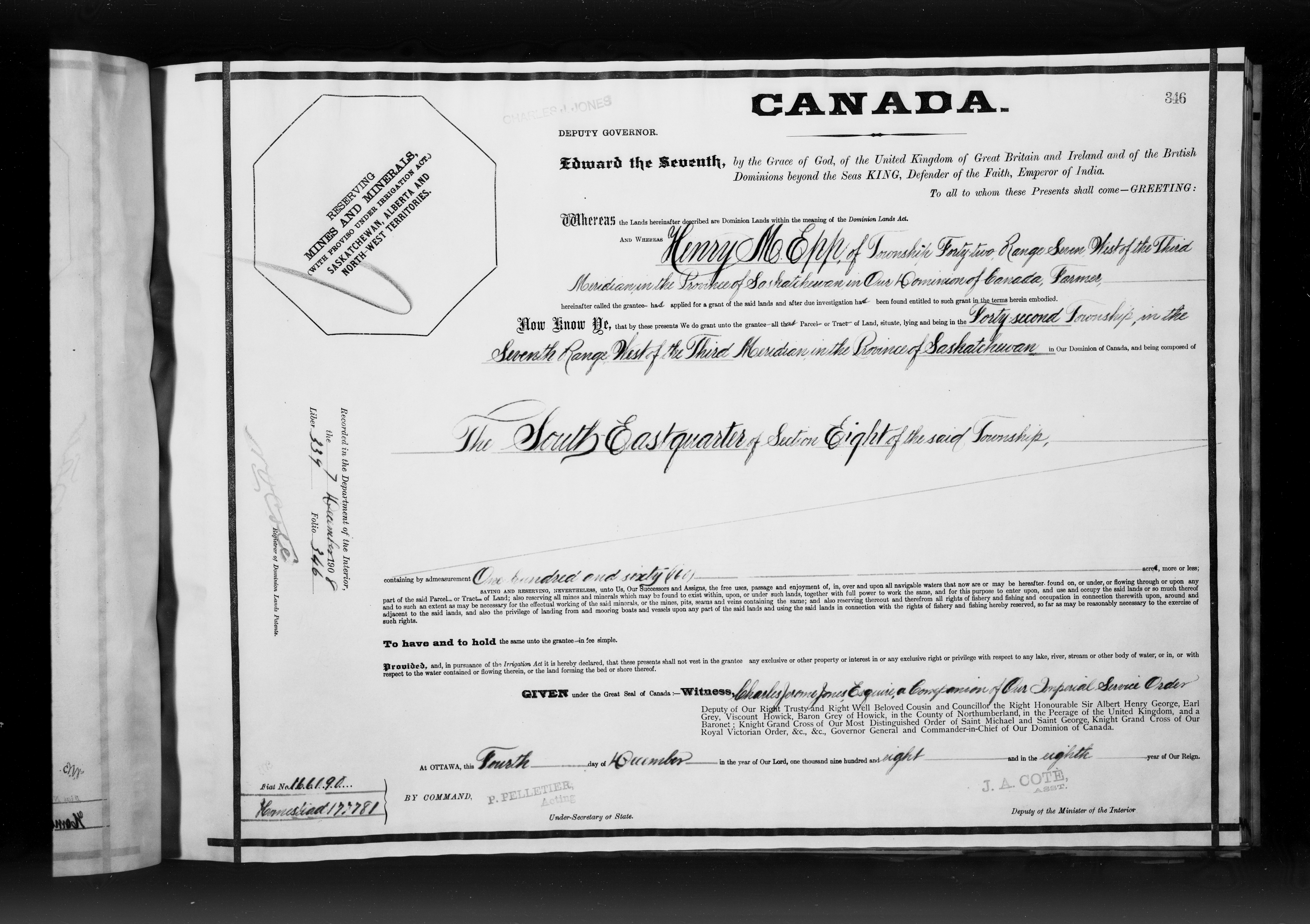 Canada. Department of the Interior : Letters patent : C-6205