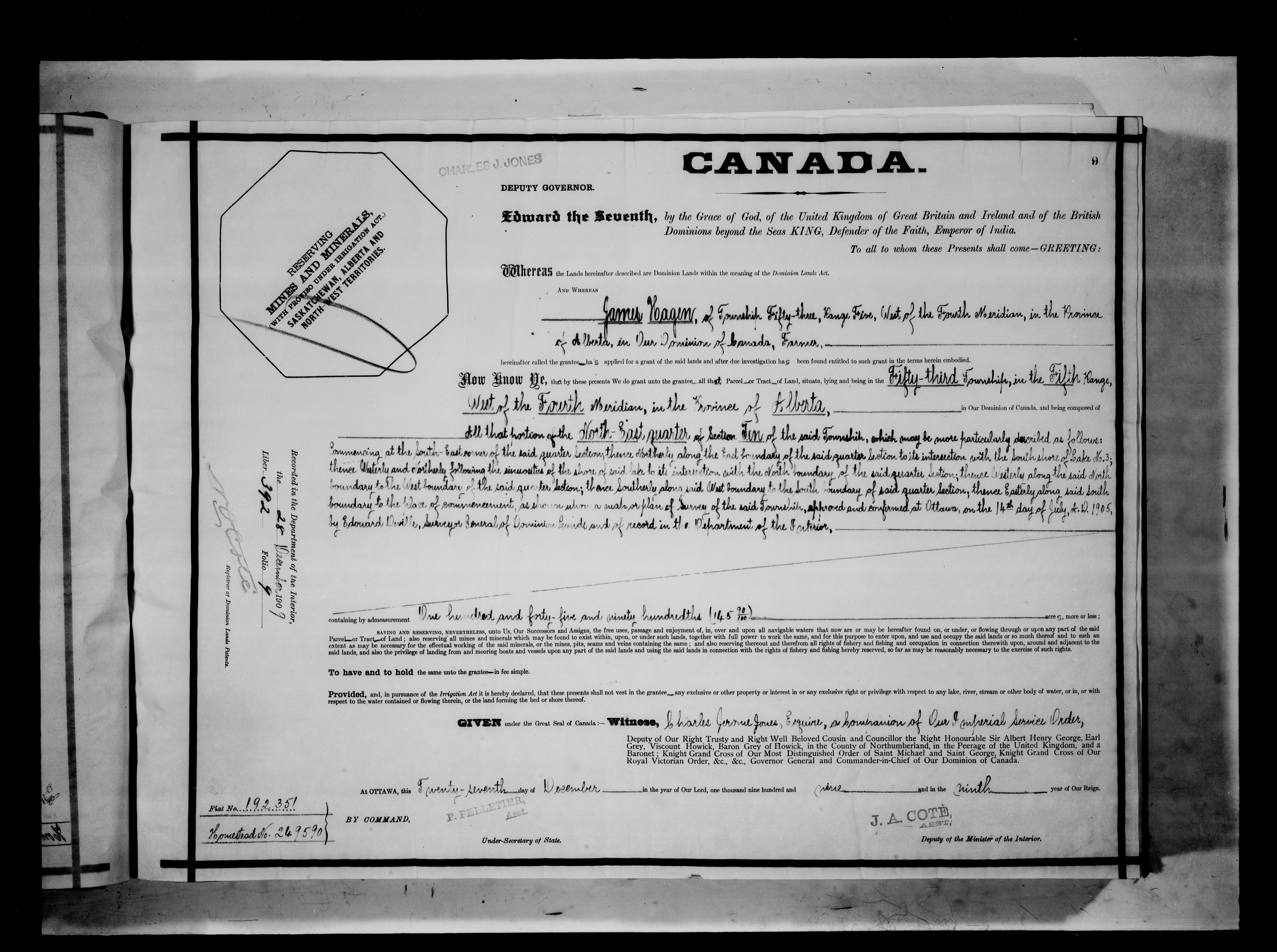 Canada. Department of the Interior : Letters patent : C-6250