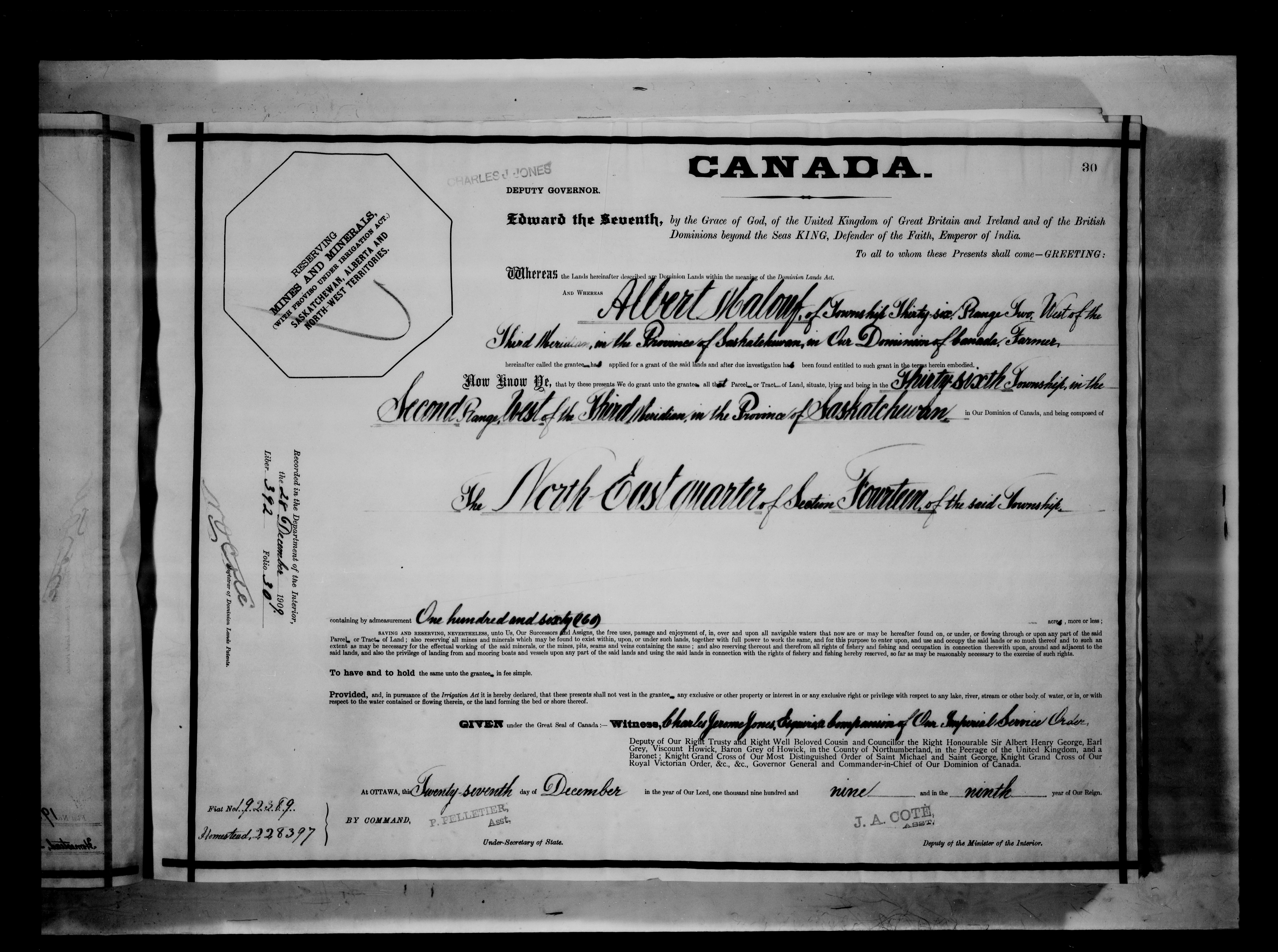 Canada. Department of the Interior : Letters patent : C-6250