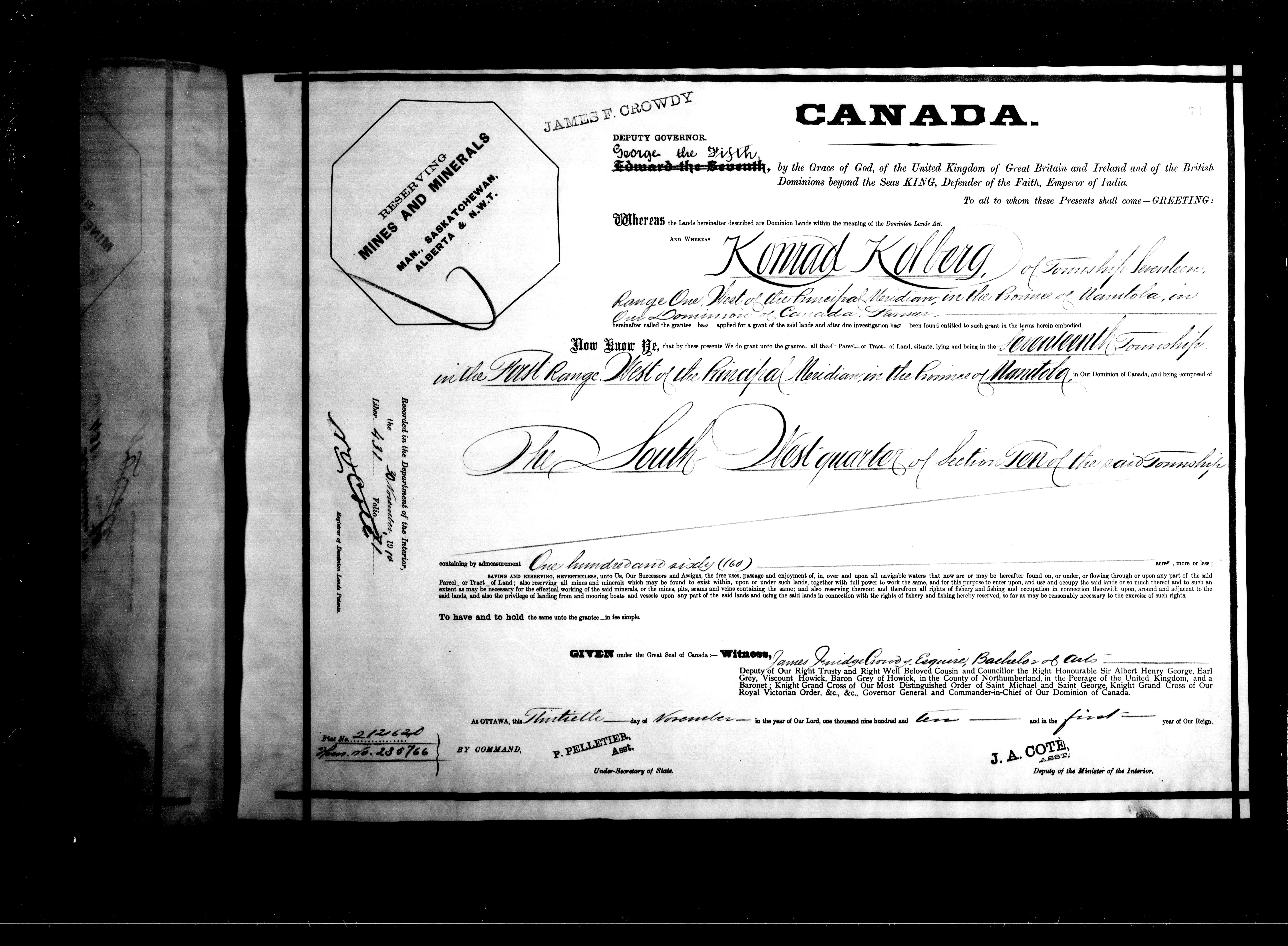 Canada. Department of the Interior : Letters patent : C-6283