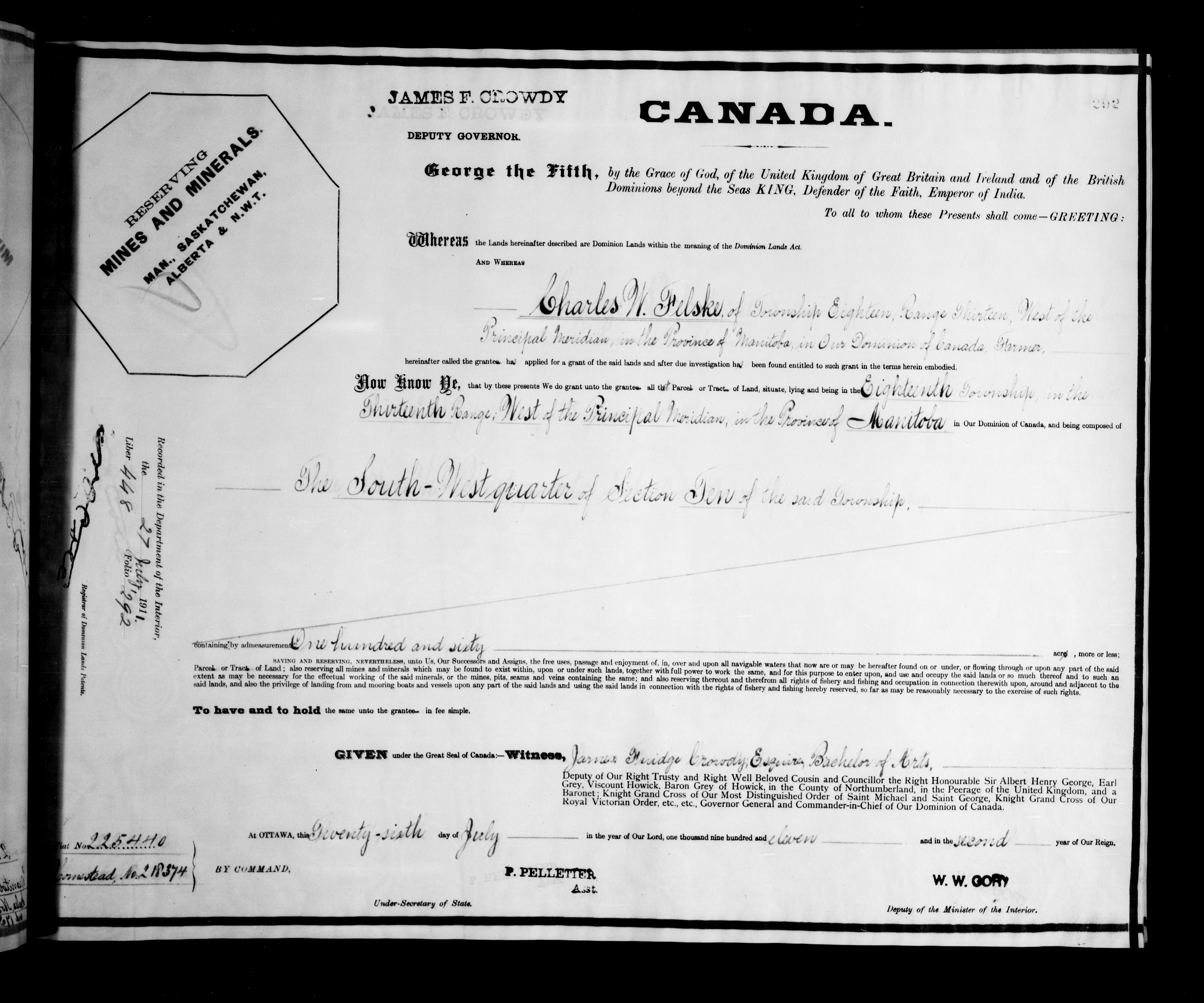 Canada. Department of the Interior : Letters patent : C-6297