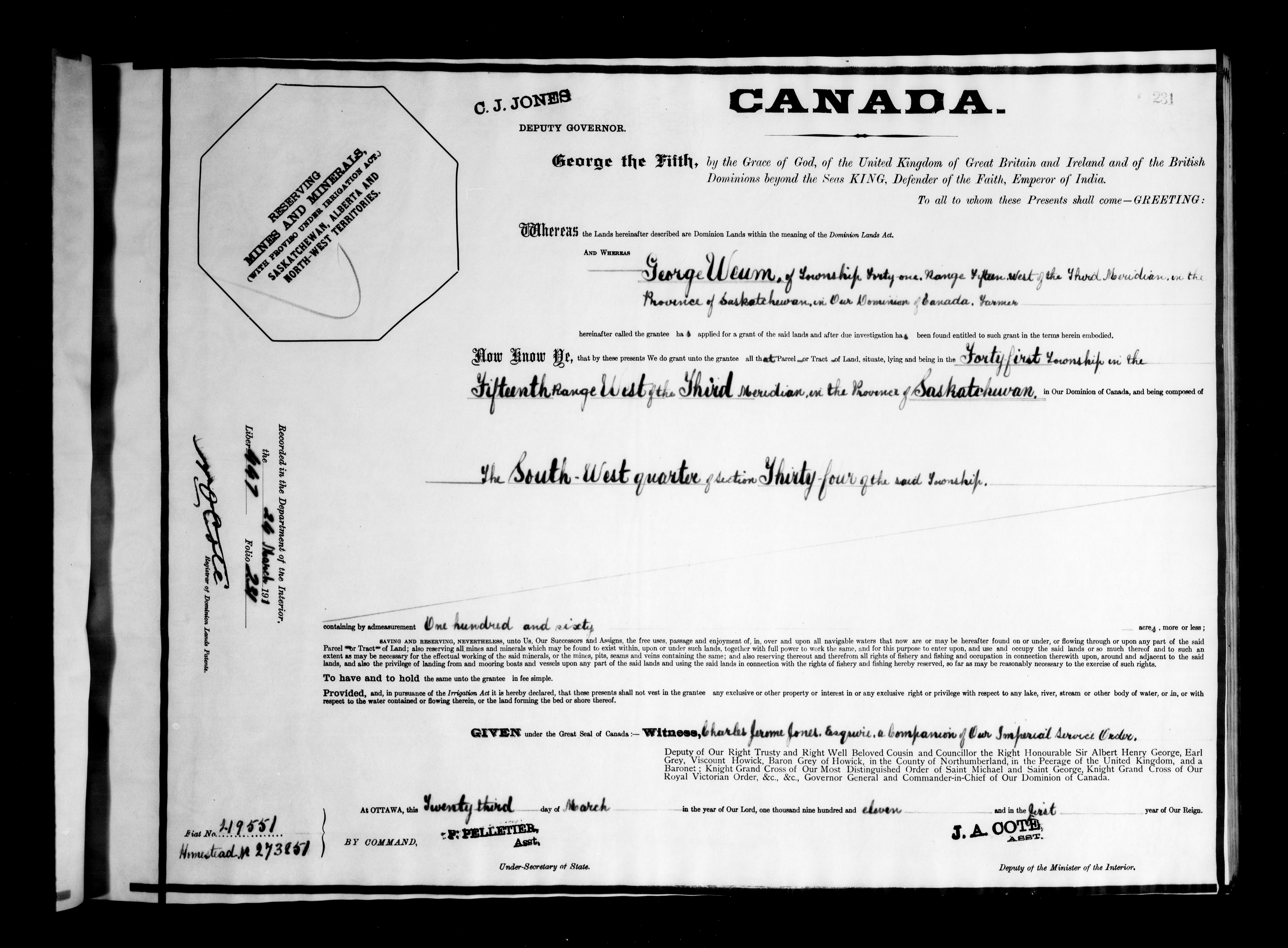 Canada. Department of the Interior : Letters patent : C-6297