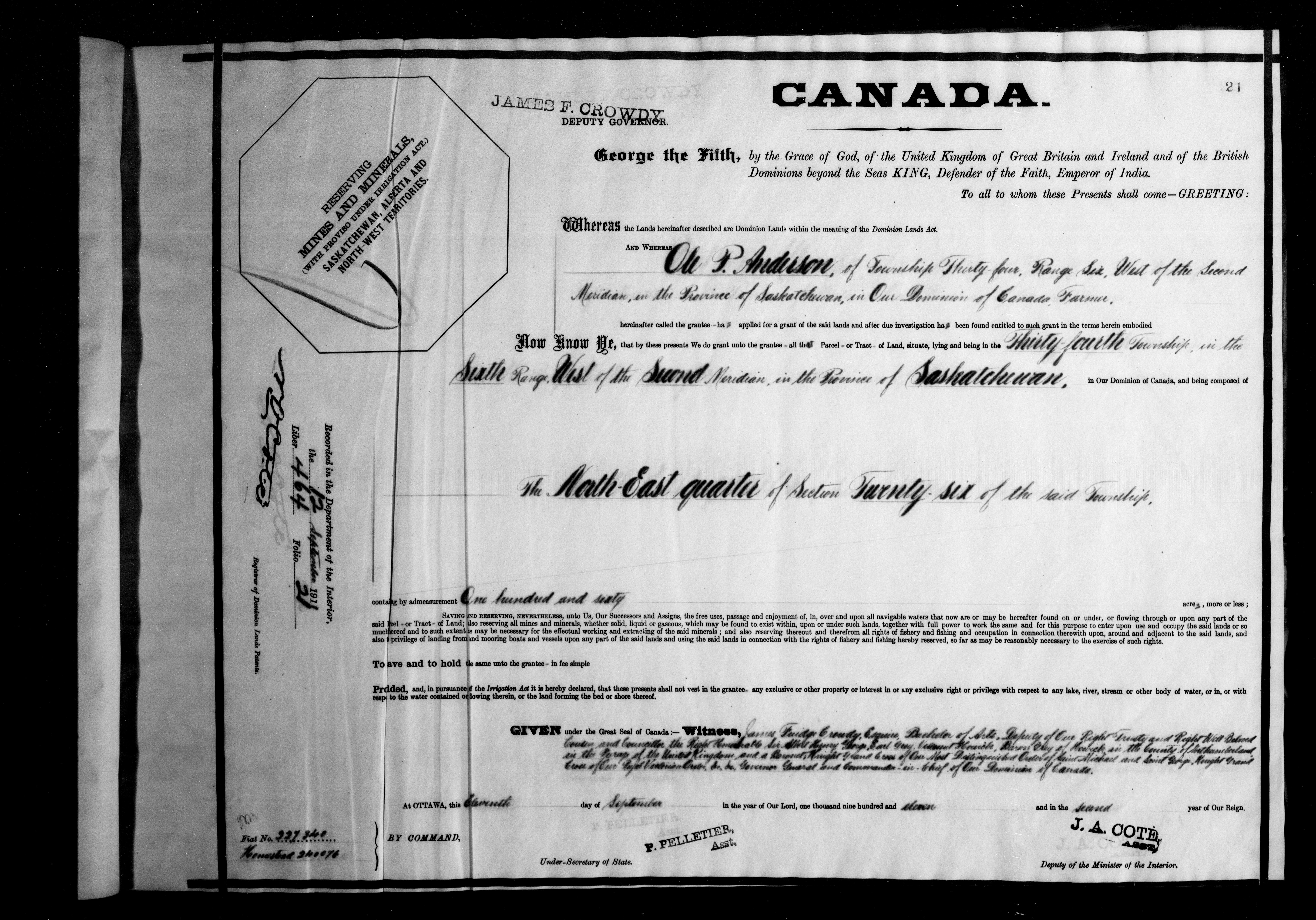 Canada. Department of the Interior : Letters patent : C-6310