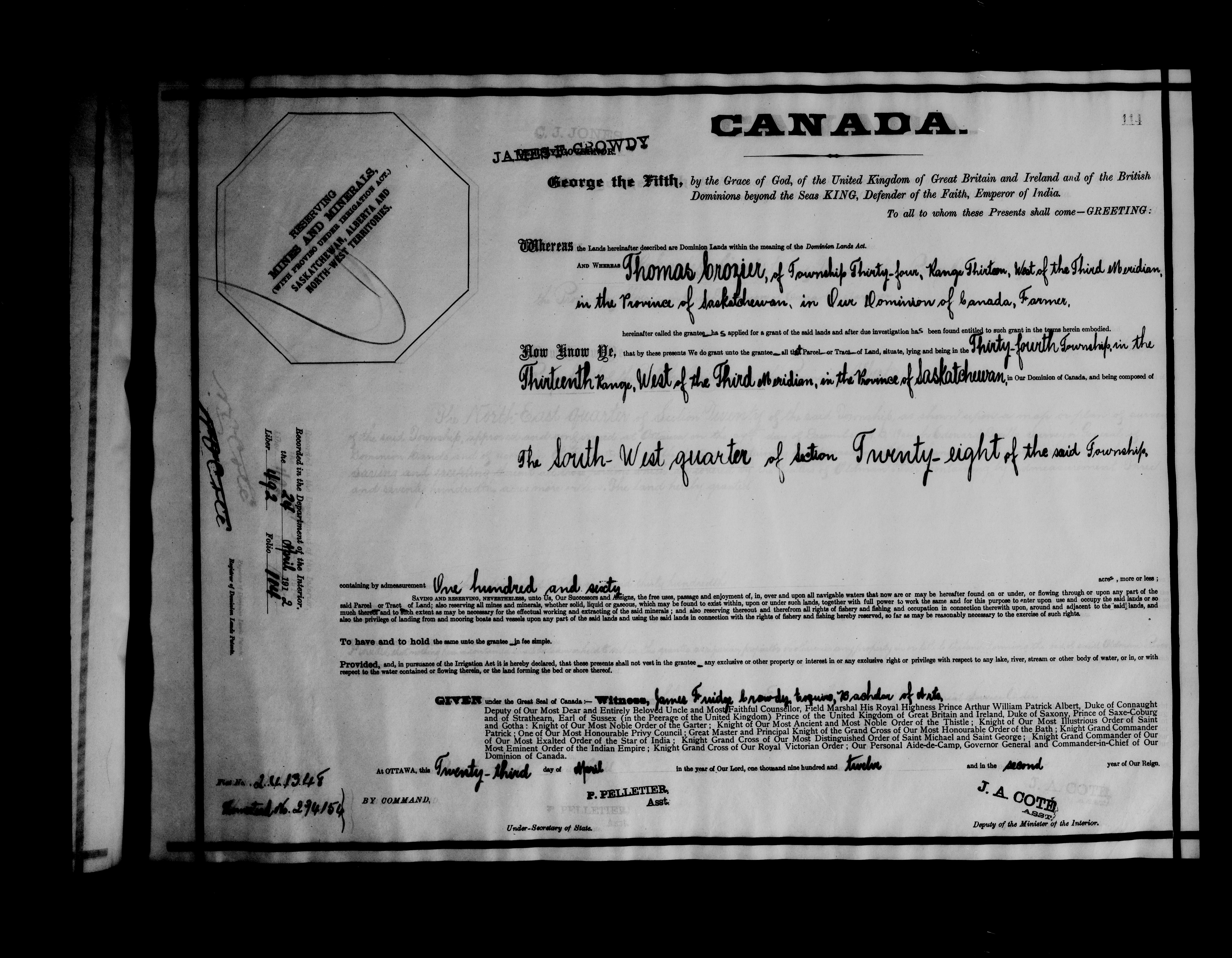 Canada. Department of the Interior : Letters patent : C-6331