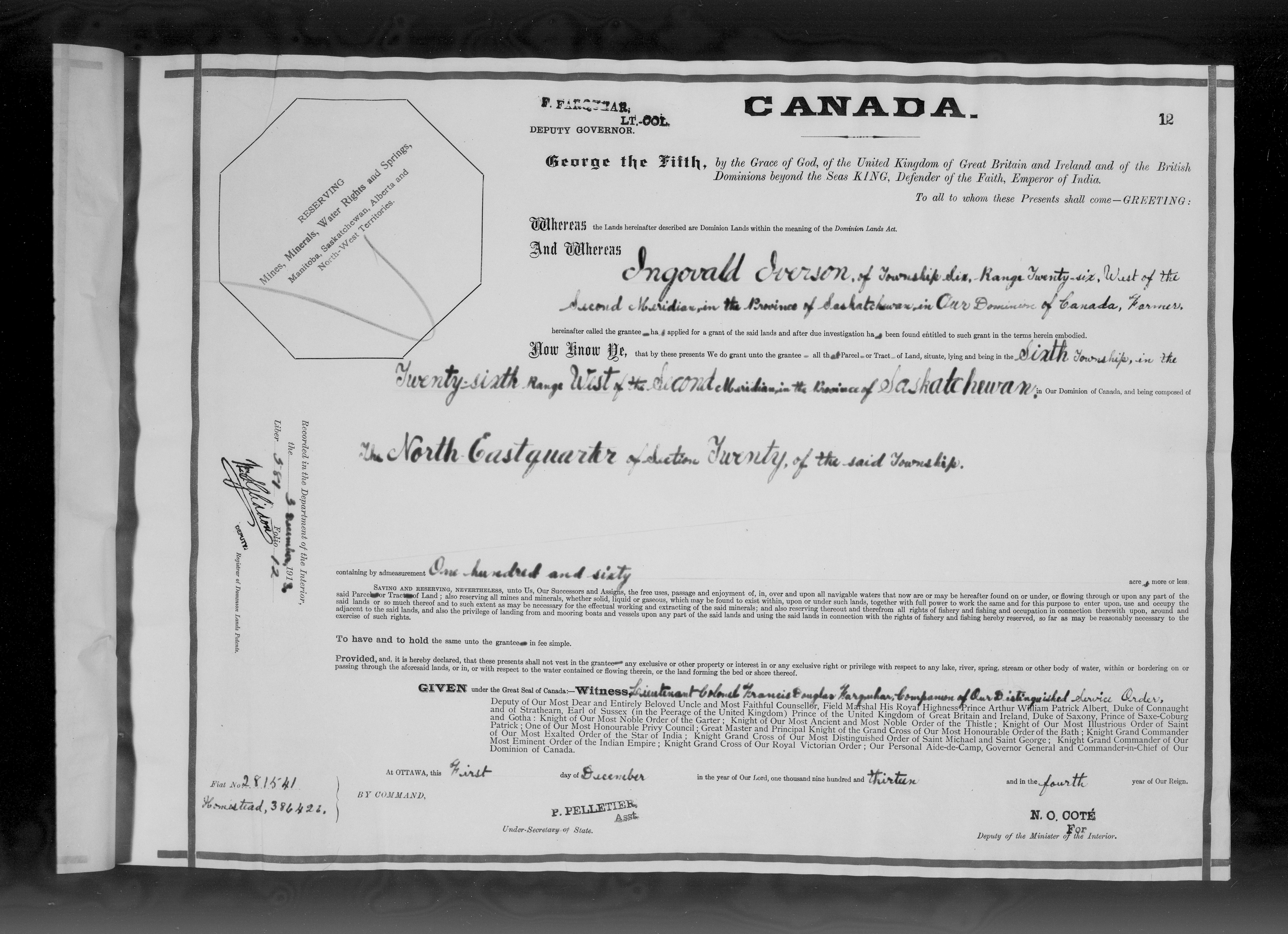 Canada. Department of the Interior : Letters patent : C-6399