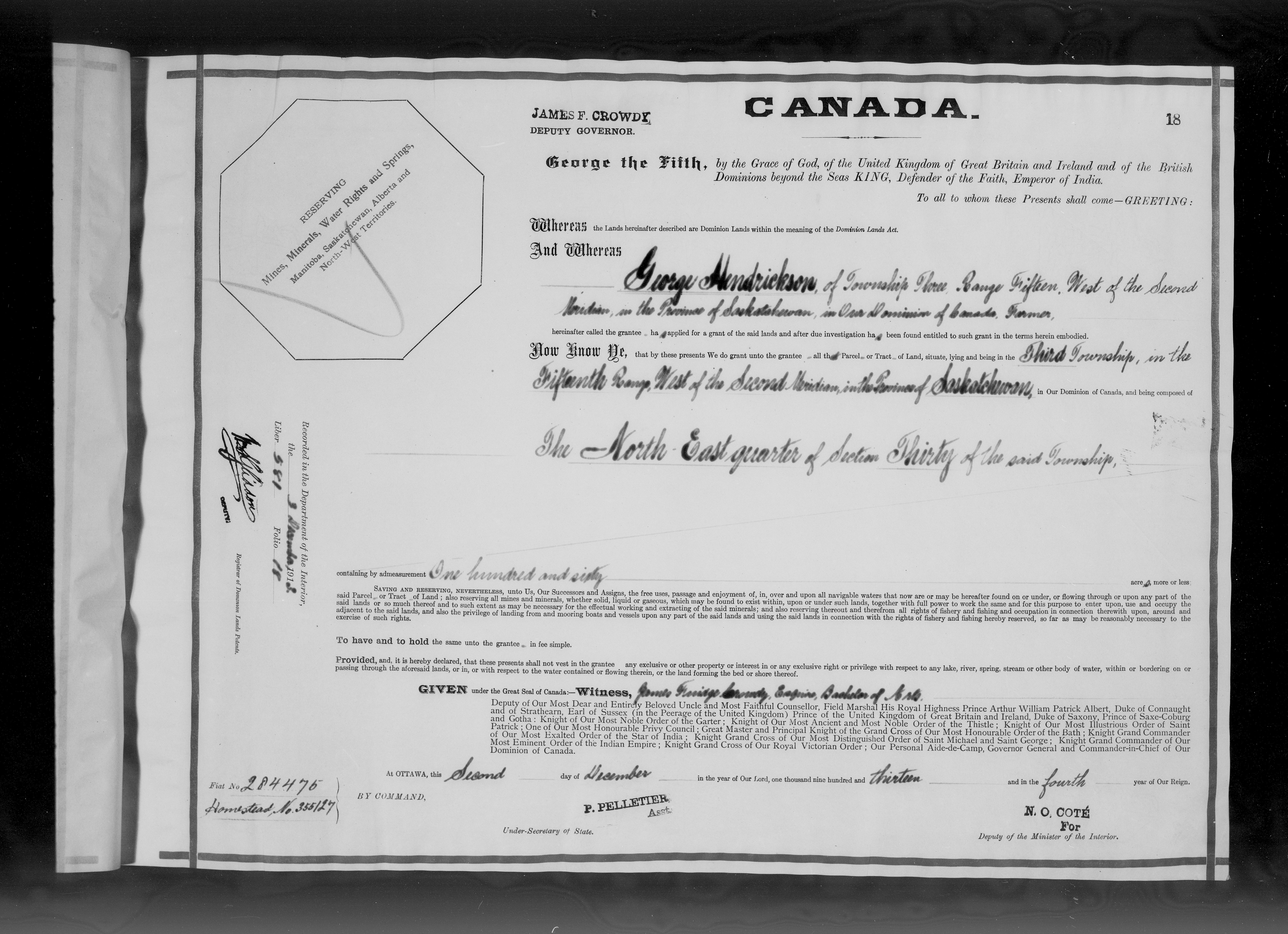Canada. Department of the Interior : Letters patent : C-6399