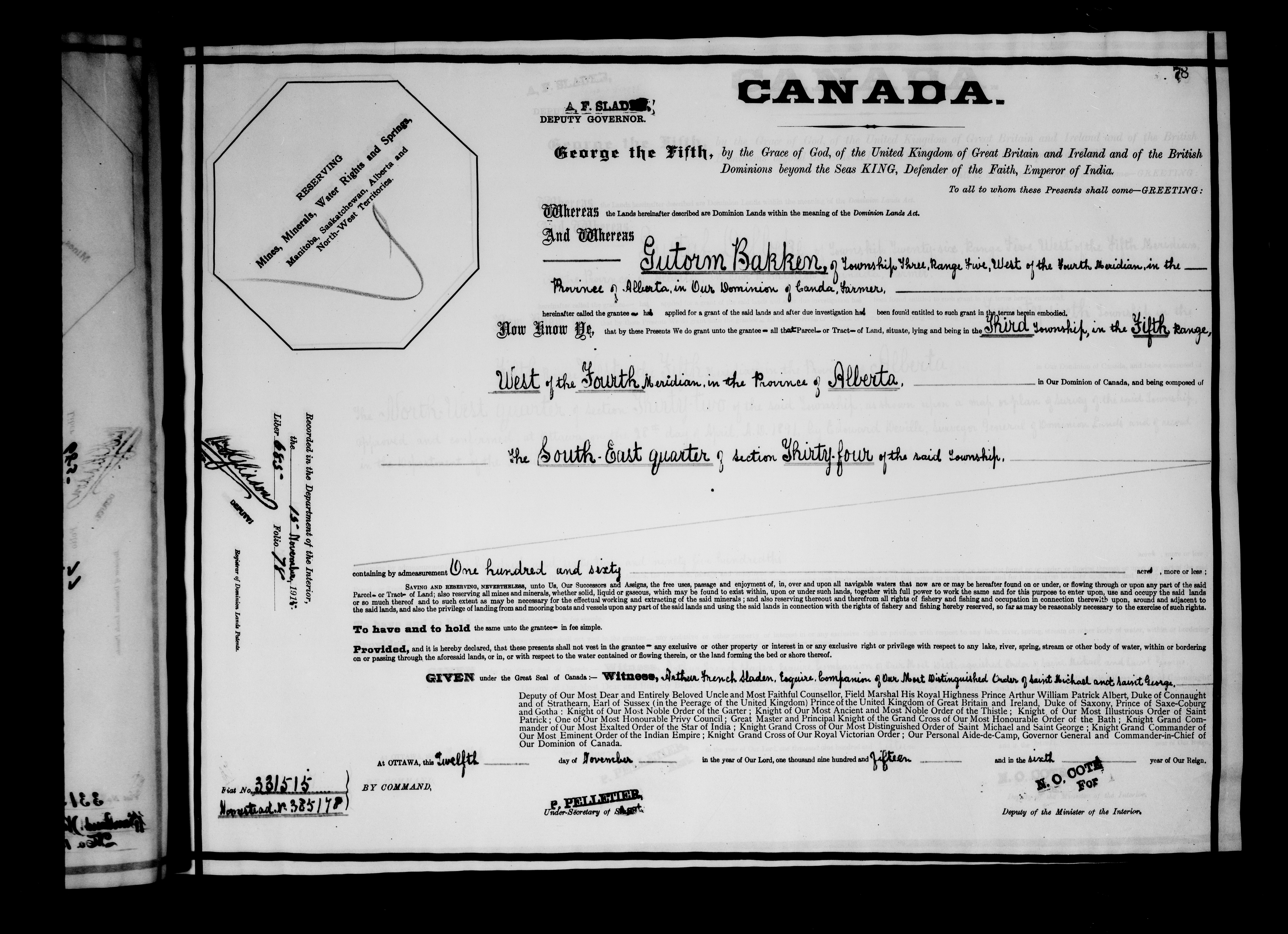 Canada. Department of the Interior : Letters patent : C-6482