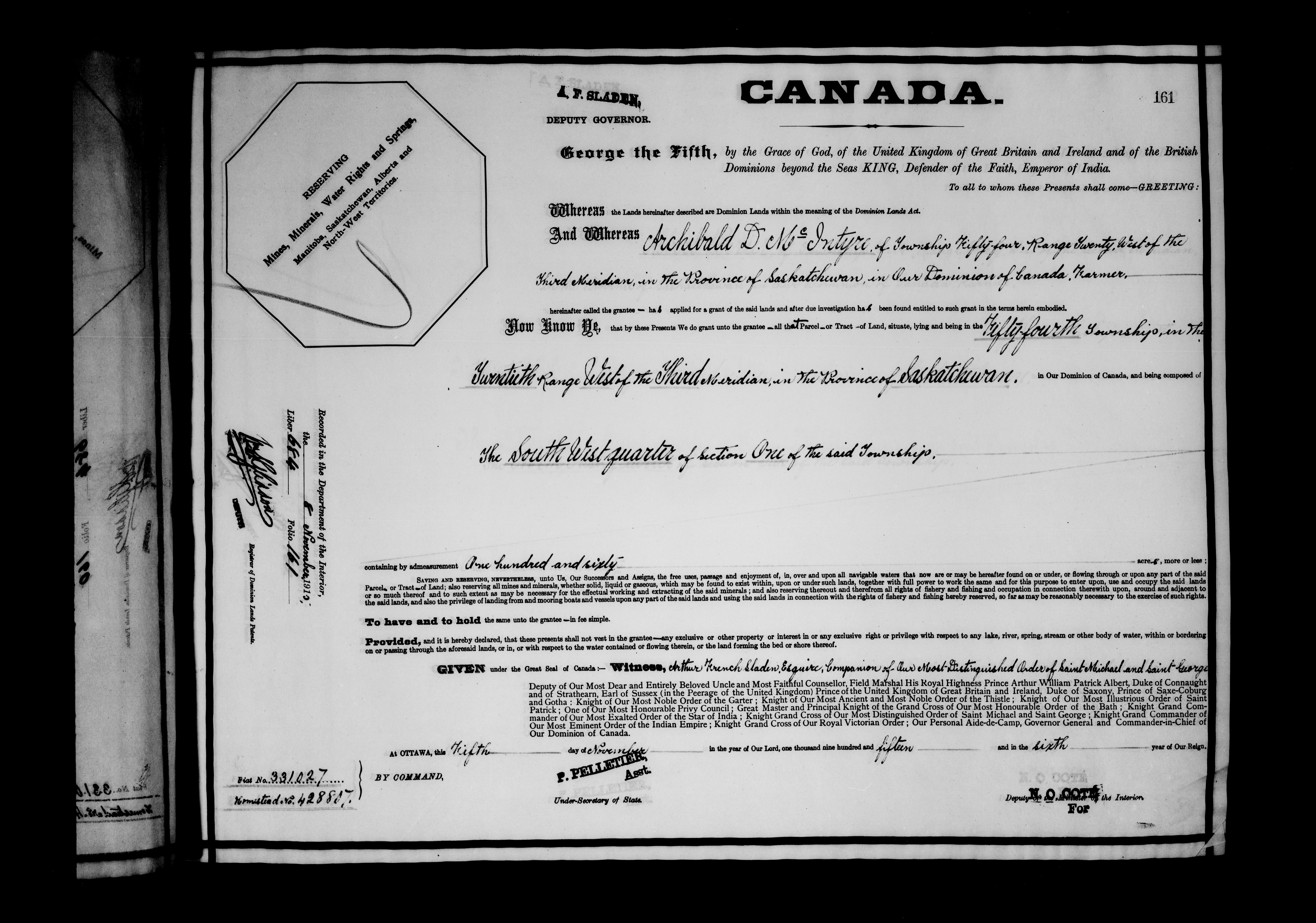 Canada. Department of the Interior : Letters patent : C-6482