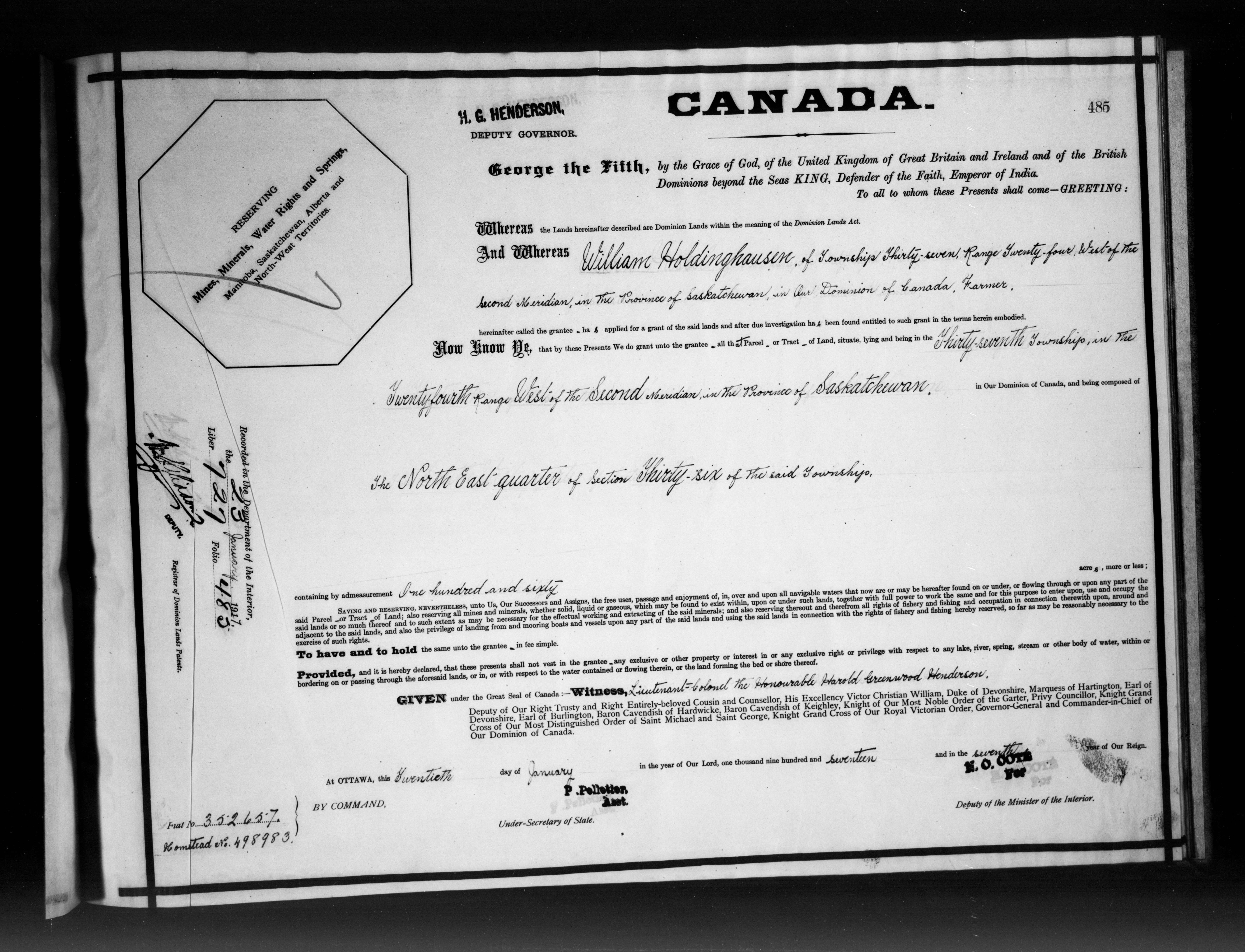 Canada. Department of the Interior : Letters patent : C-6518