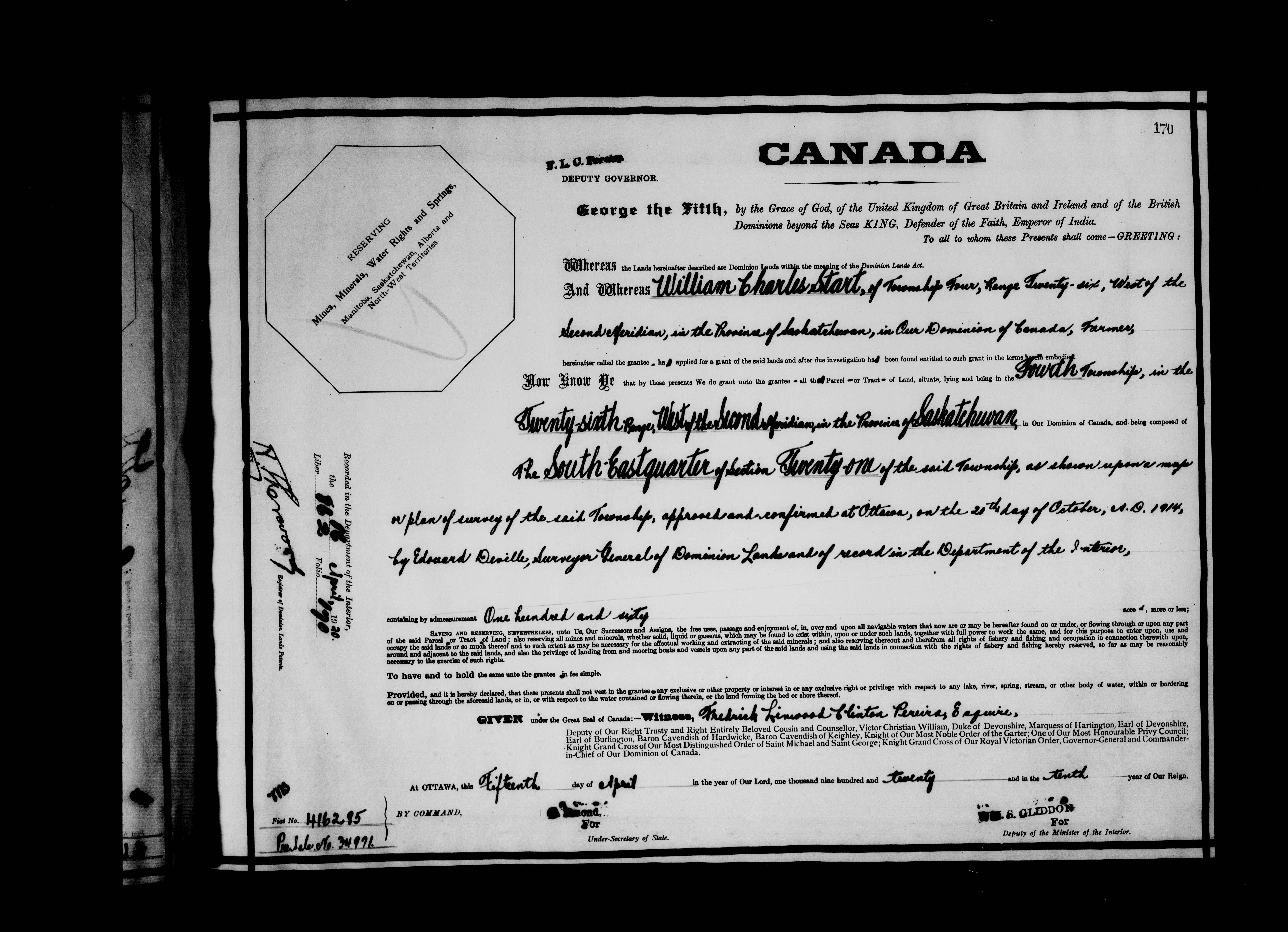 Canada. Department of the Interior : Letters patent : C-6628