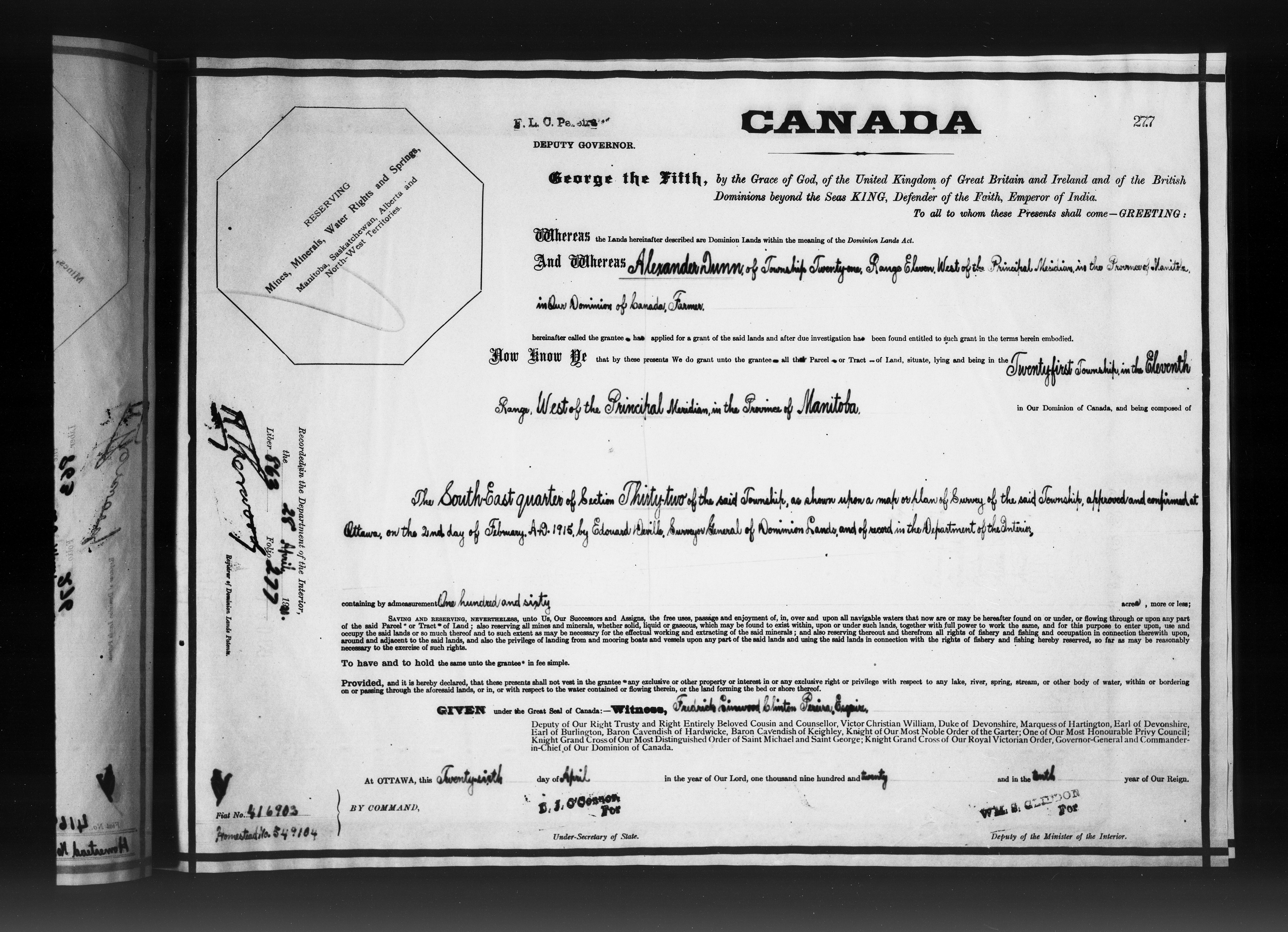 Canada. Department of the Interior : Letters patent : C-6629