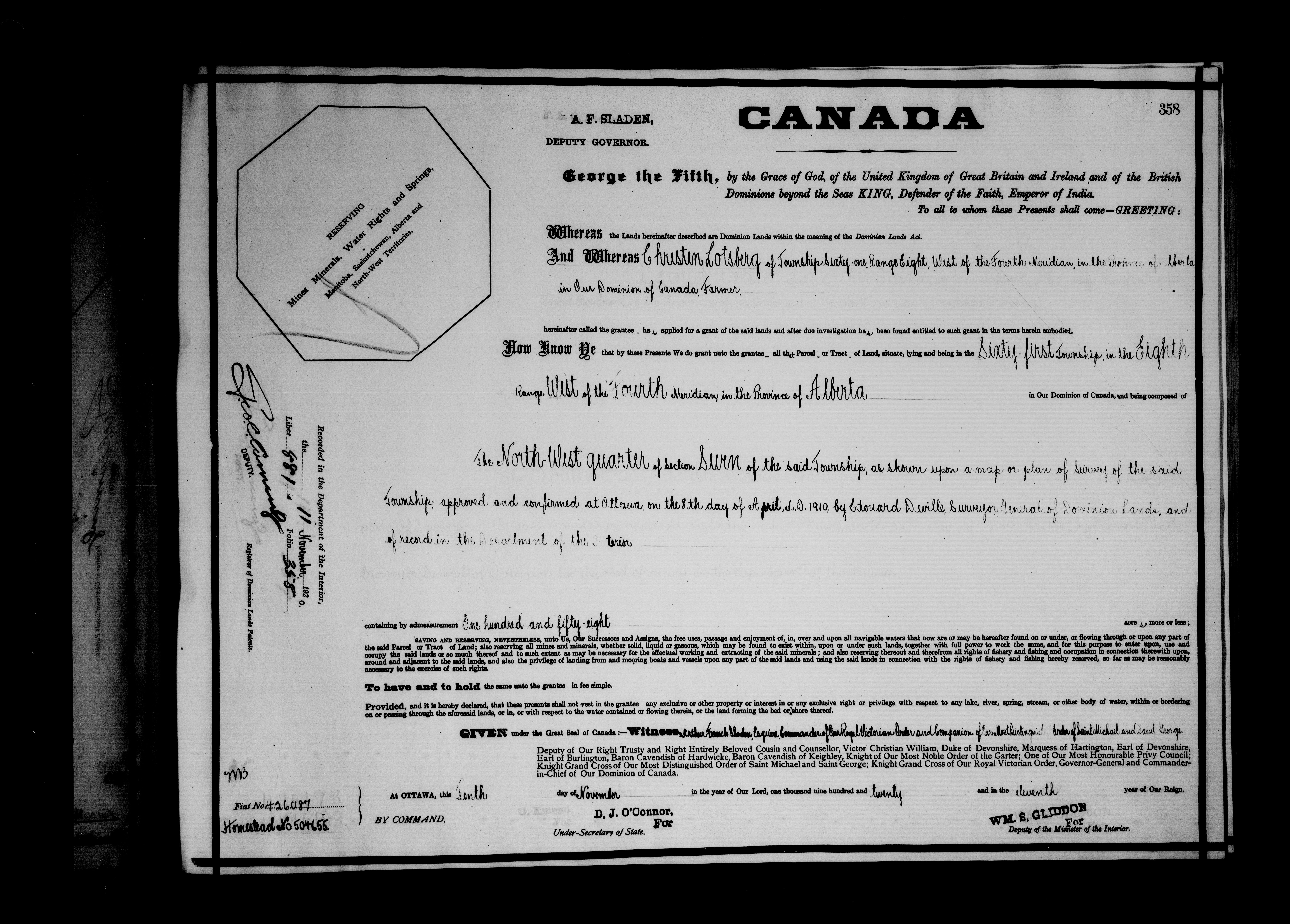 Canada. Department of the Interior : Letters patent : C-6646