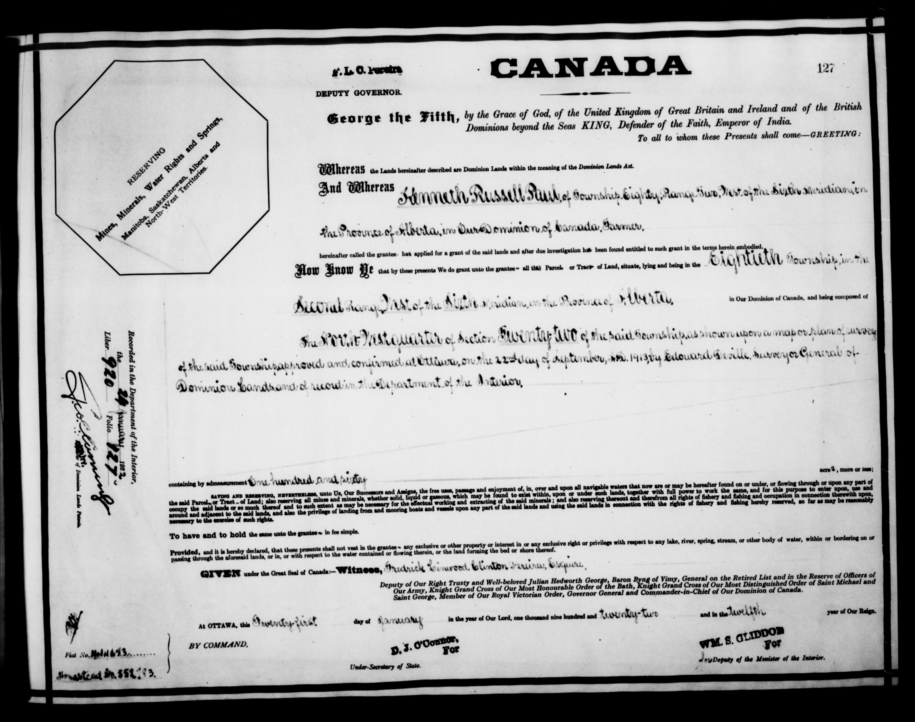 Canada. Department of the Interior : Letters patent : C-6680