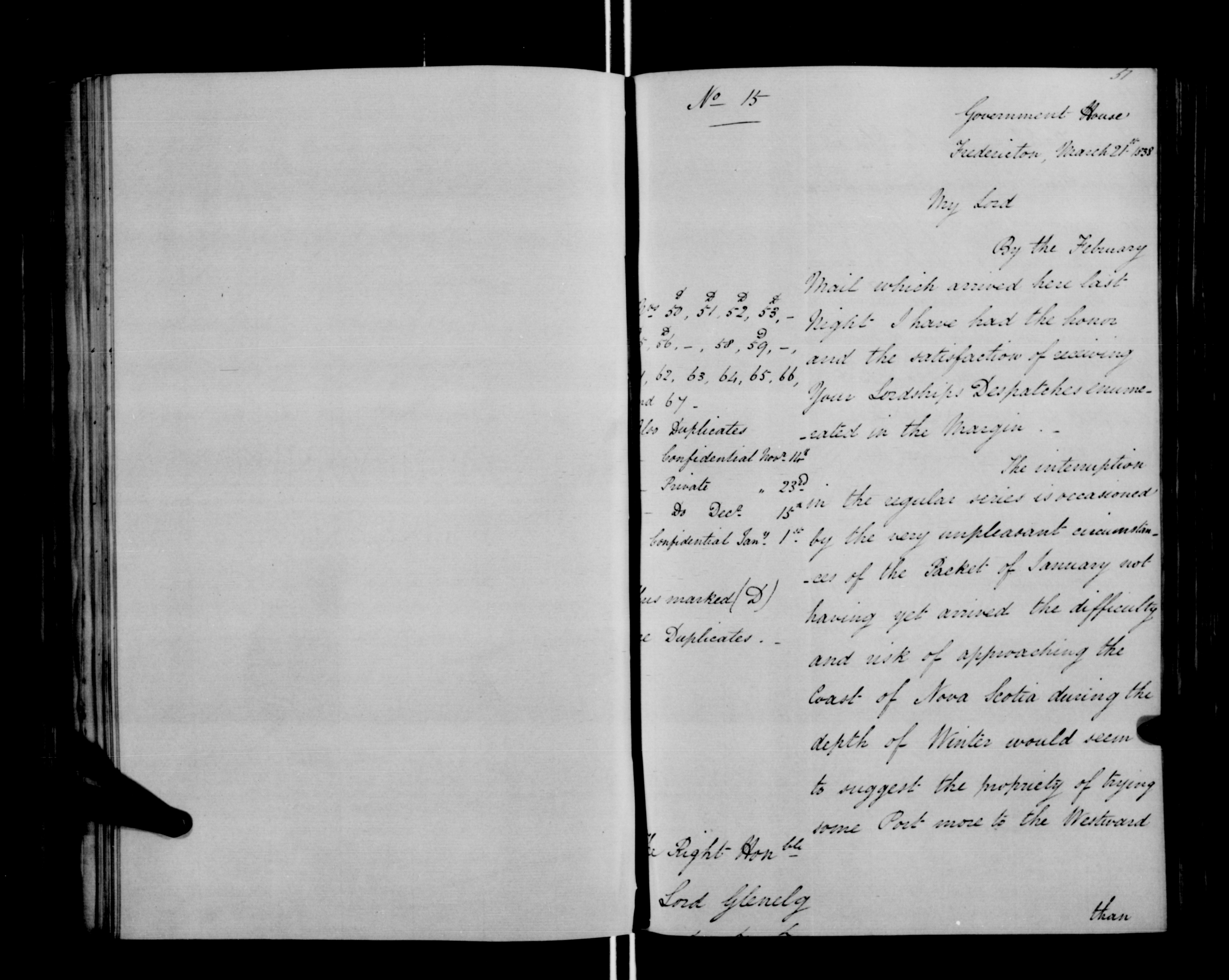 Despatches sent by the Office of the Lieutenant Governor of New Brunswick - 67