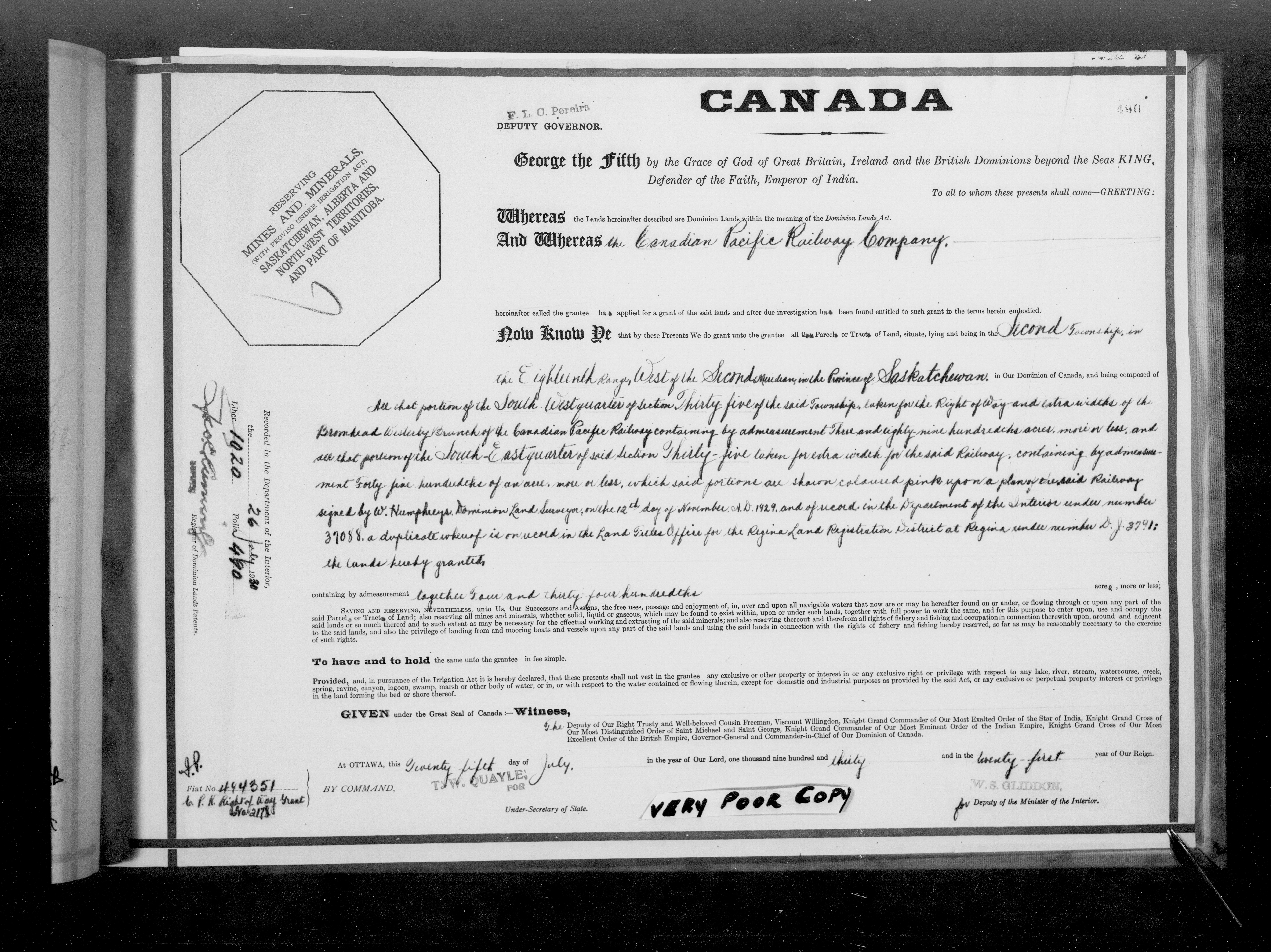 Canada. Department of the Interior : Letters patent : C-6758