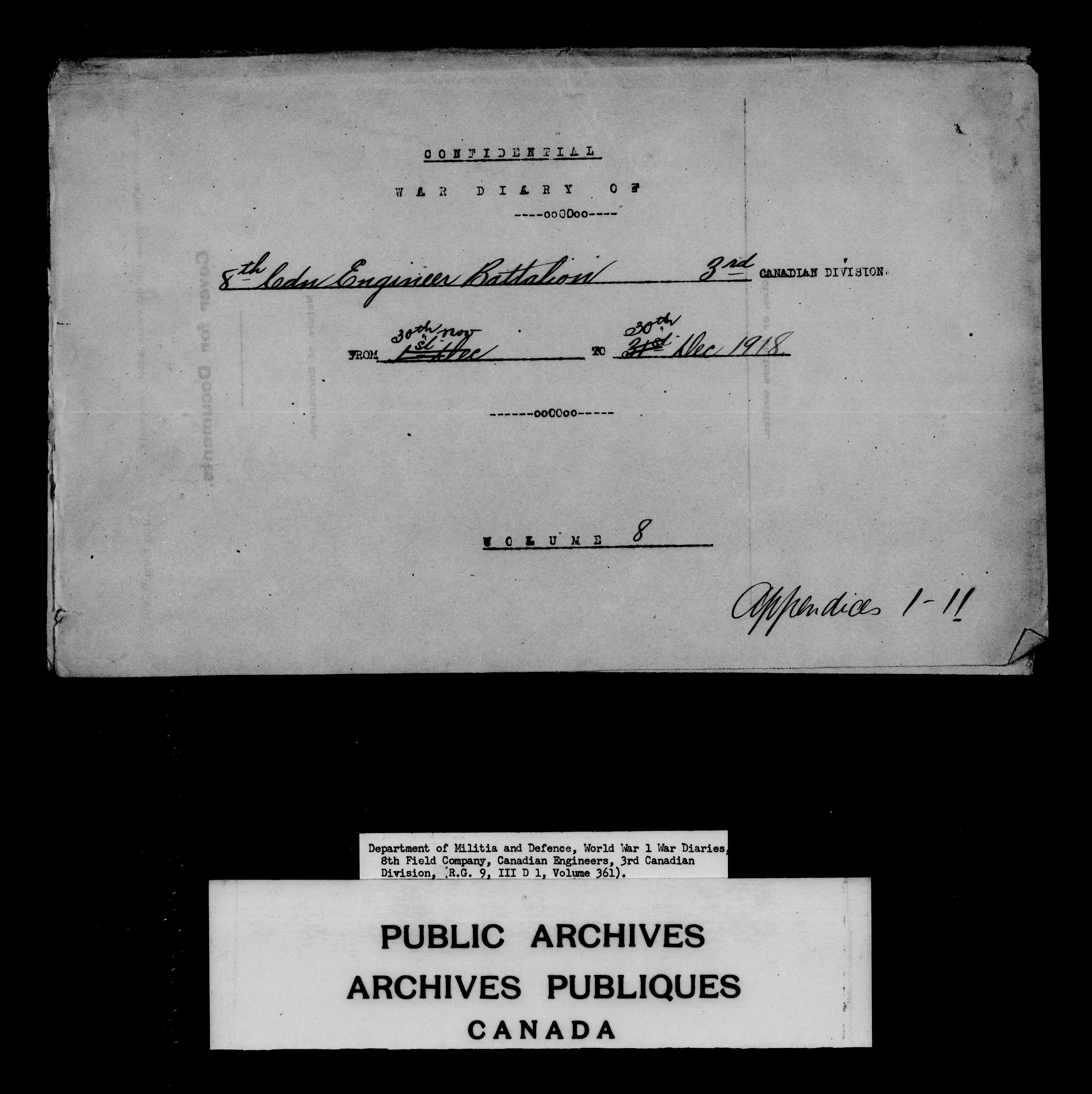 Department of Militia and Defence, WWI Diaries : 8th Field Company, Canadian Engineers, 3rd Canadian Division - 6771