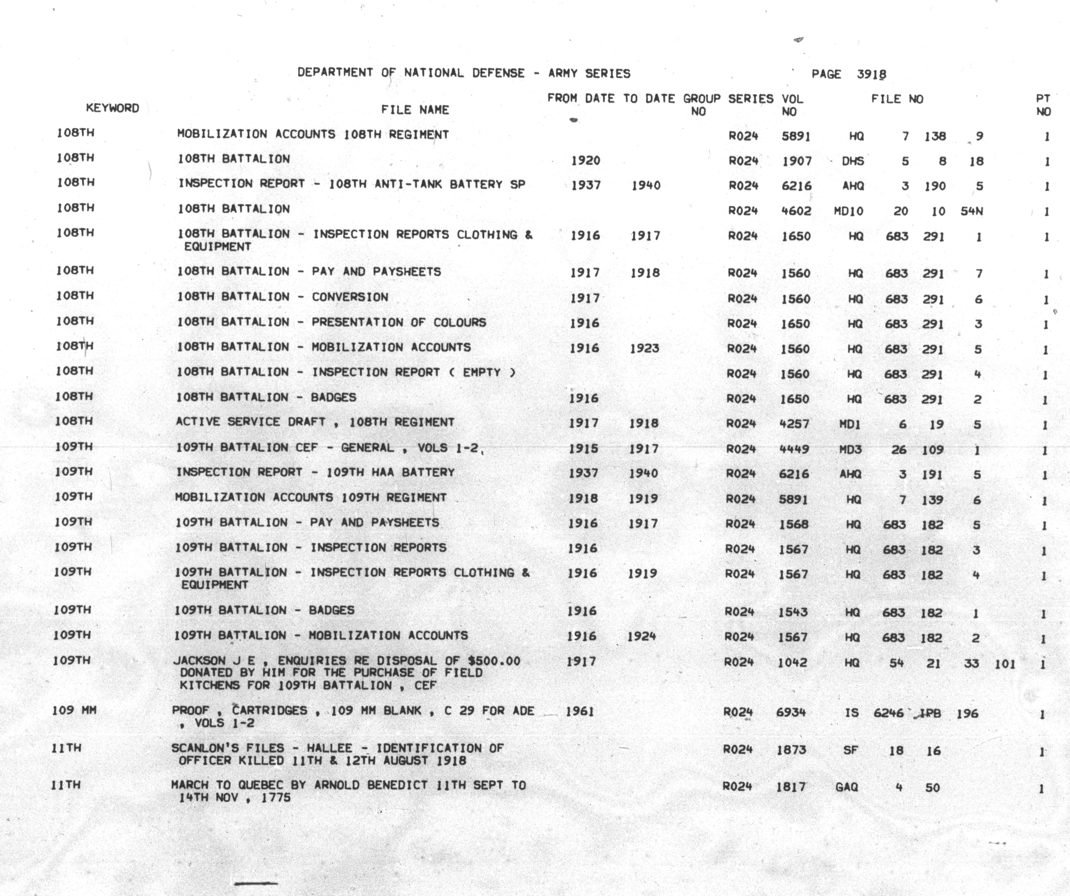 Department of National Defence : Army Historical Section, Index to Army records, volumes 1 to 7000A - 6773