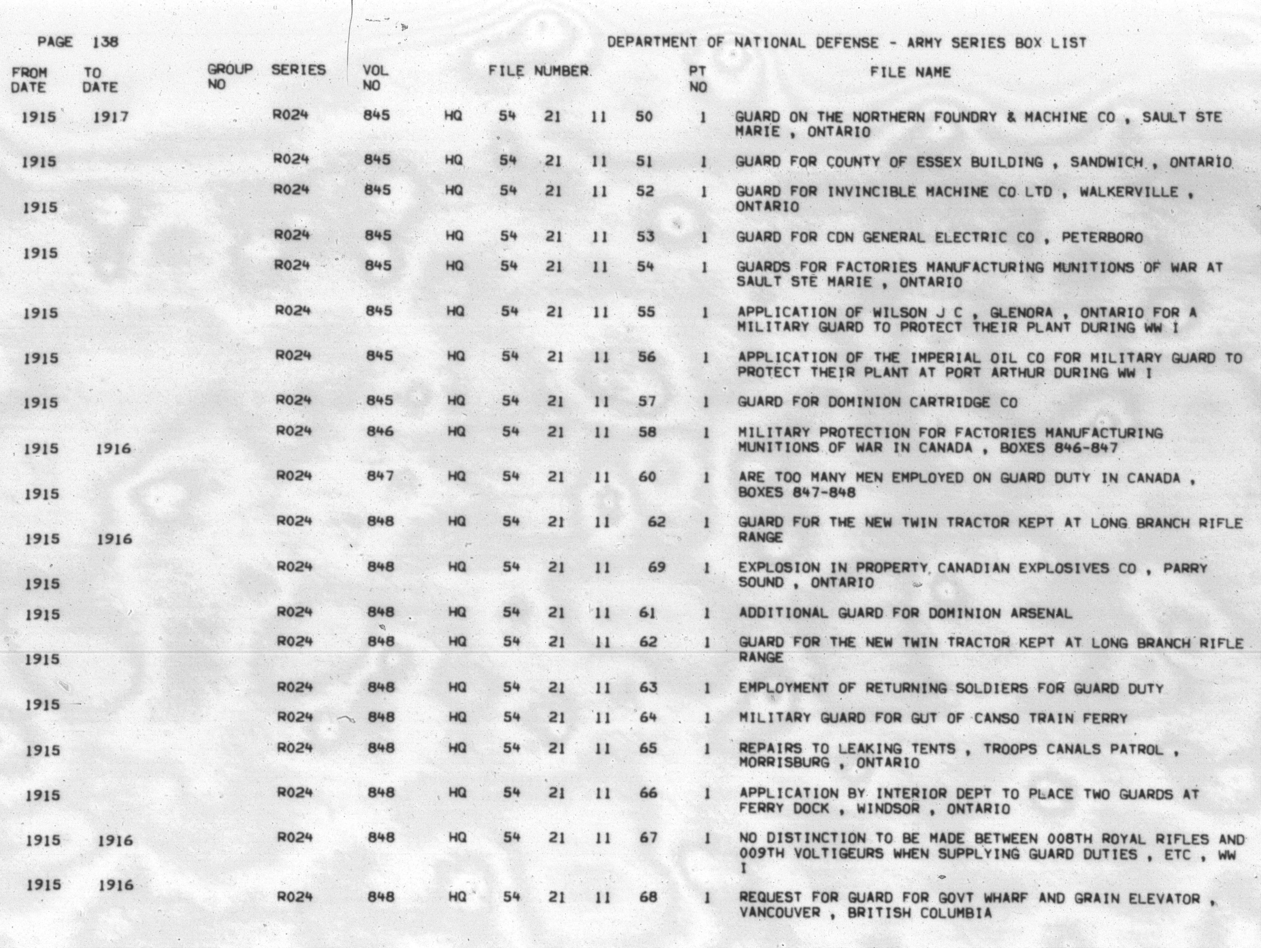 Department of National Defence : Army Historical Section, Index to Army records, volumec 1 to 7000A - 6774