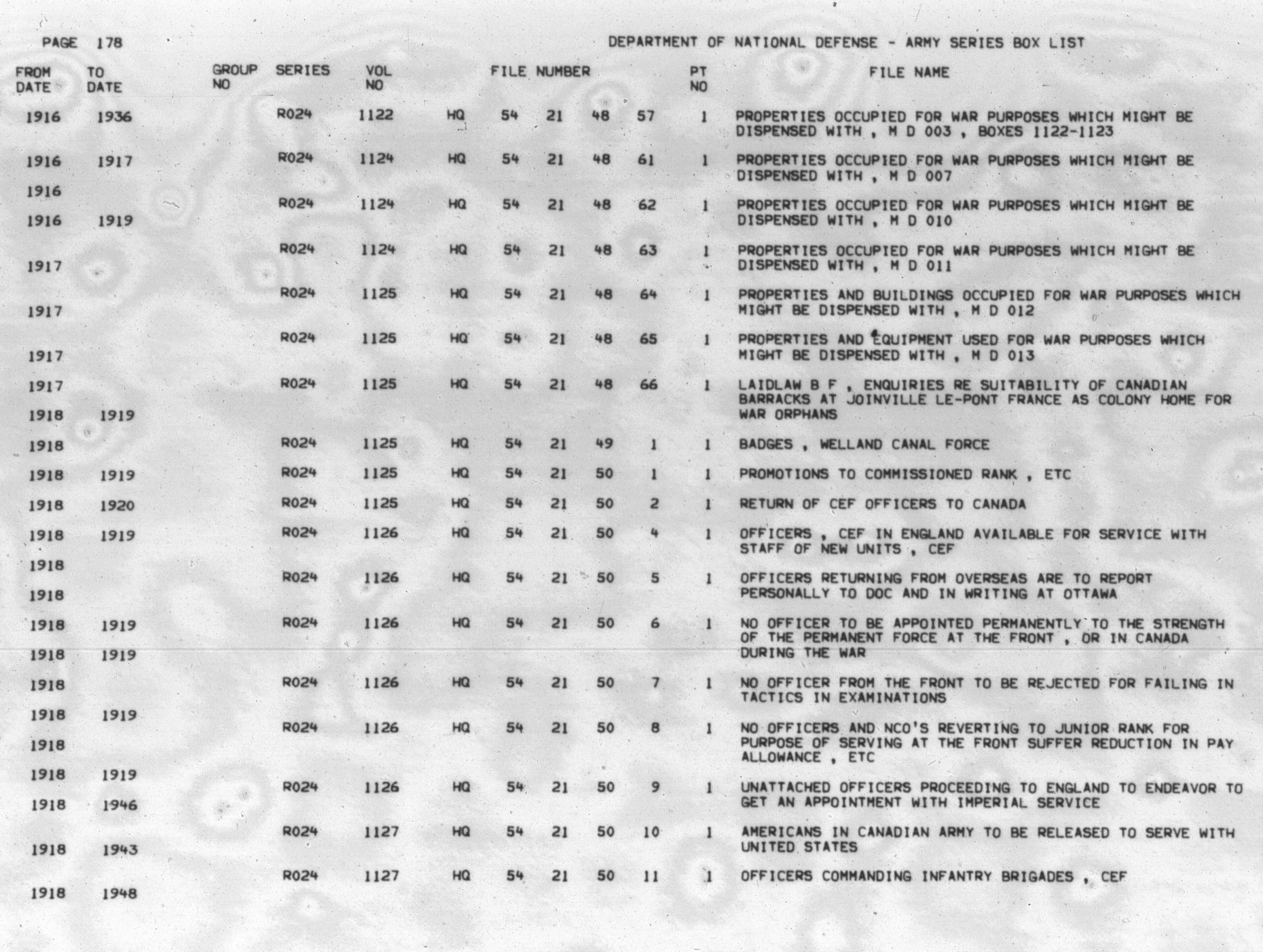 Department of National Defence : Army Historical Section, Index to Army records, volumec 1 to 7000A - 6774