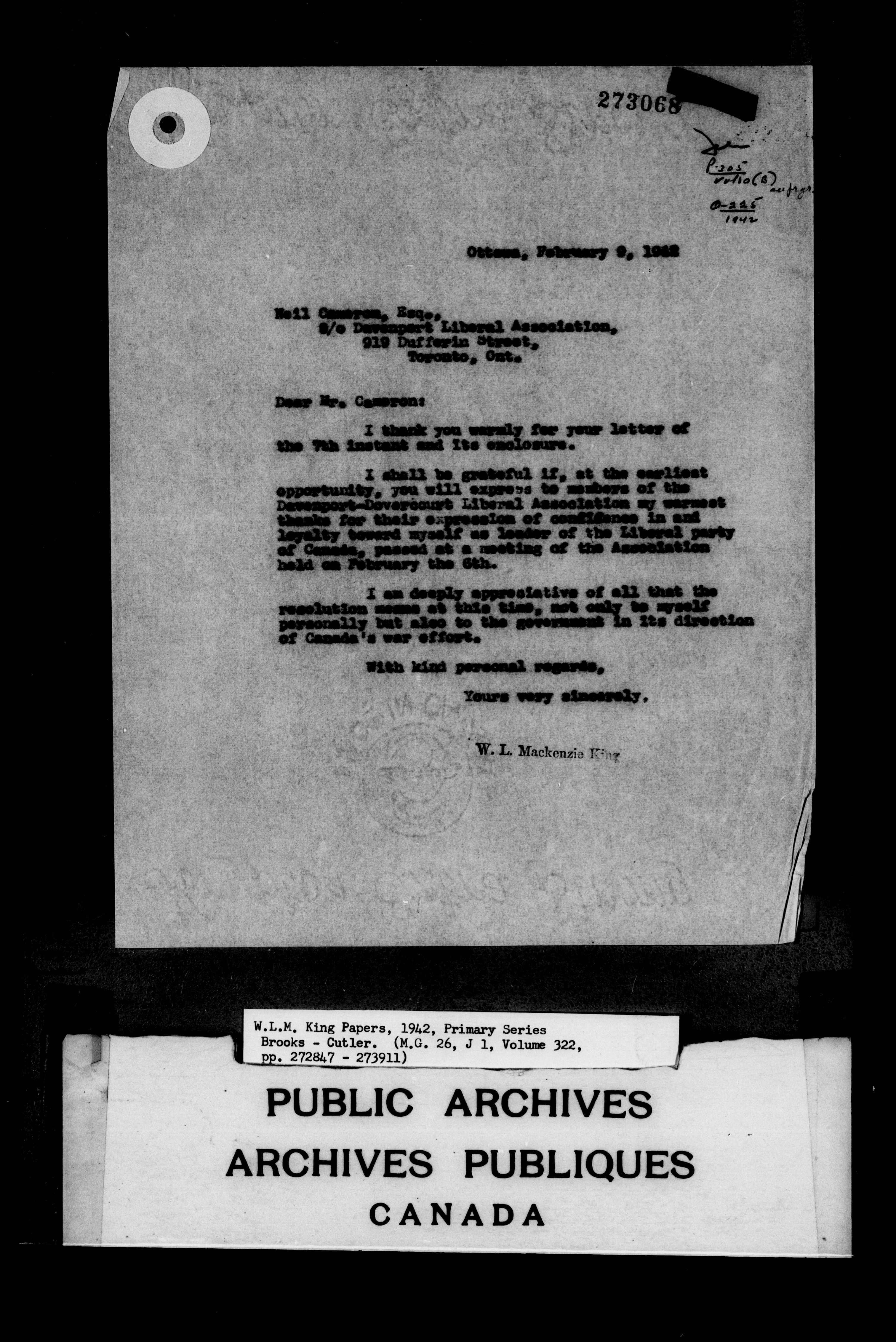 William Lyon Mackenzie King : Primary series correspondence (J1) - 6804