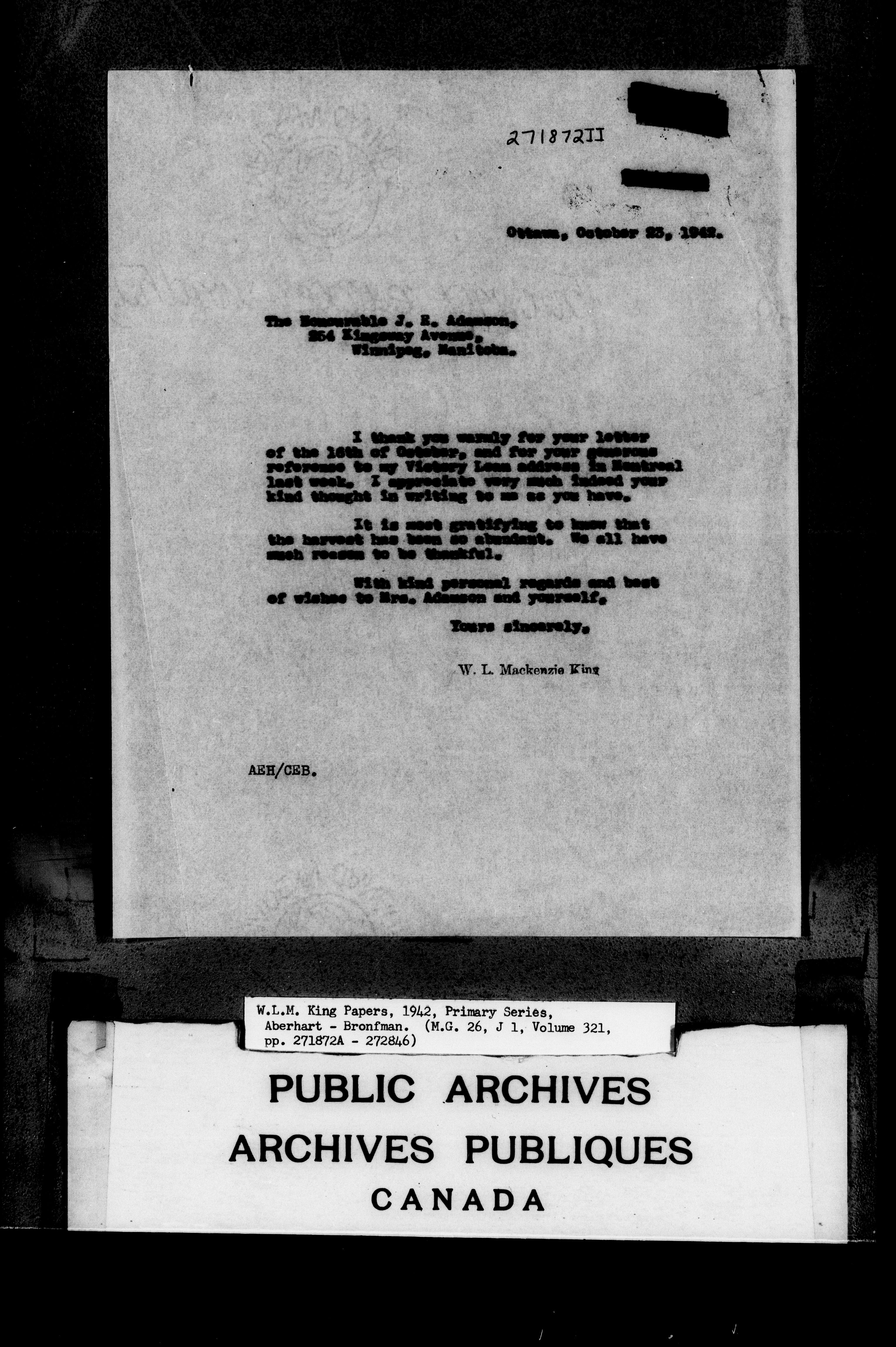 William Lyon Mackenzie King : Primary series correspondence (J1) - 6804