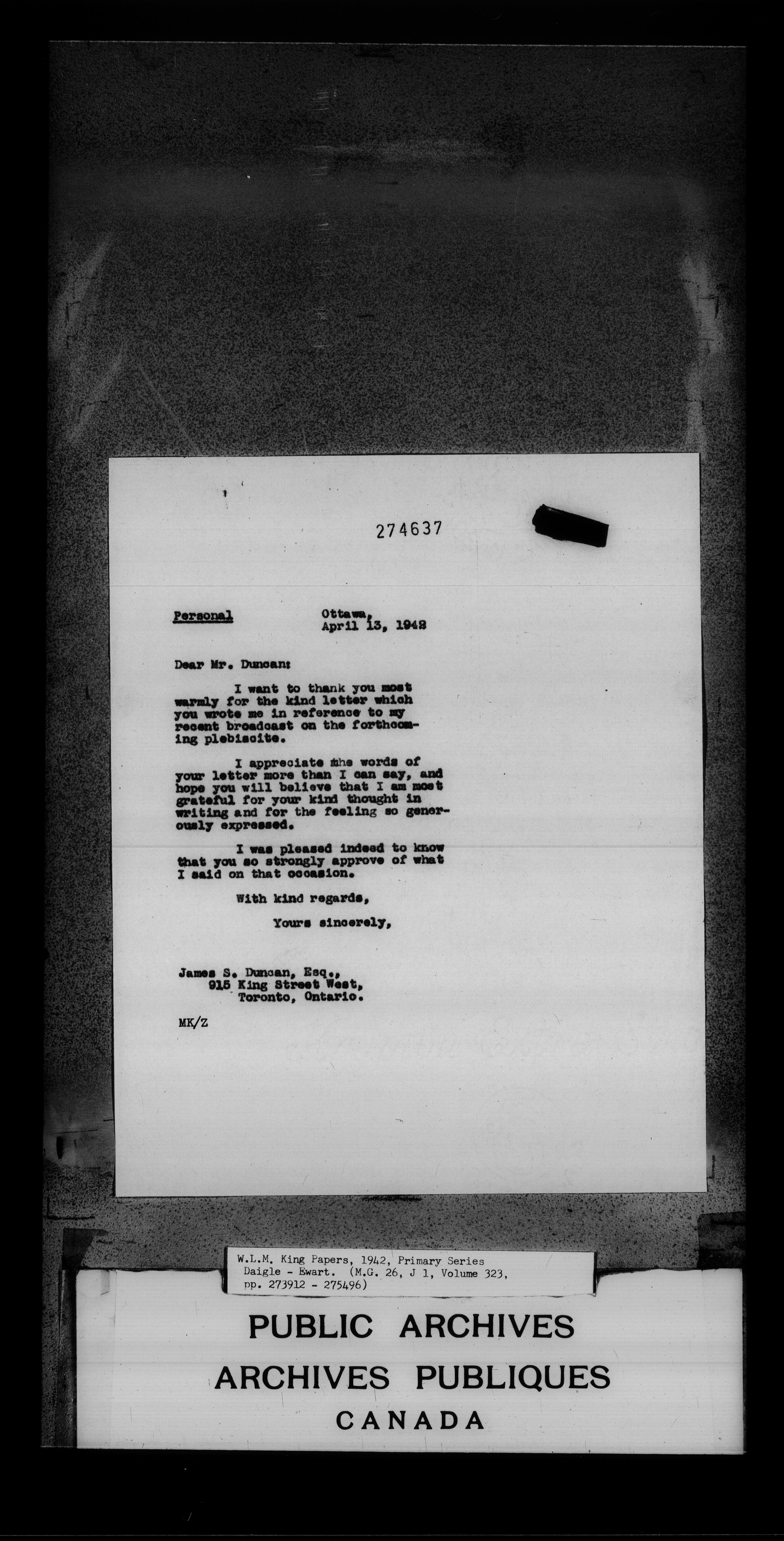 William Lyon Mackenzie King : Primary series correspondence (J1) : C-6805