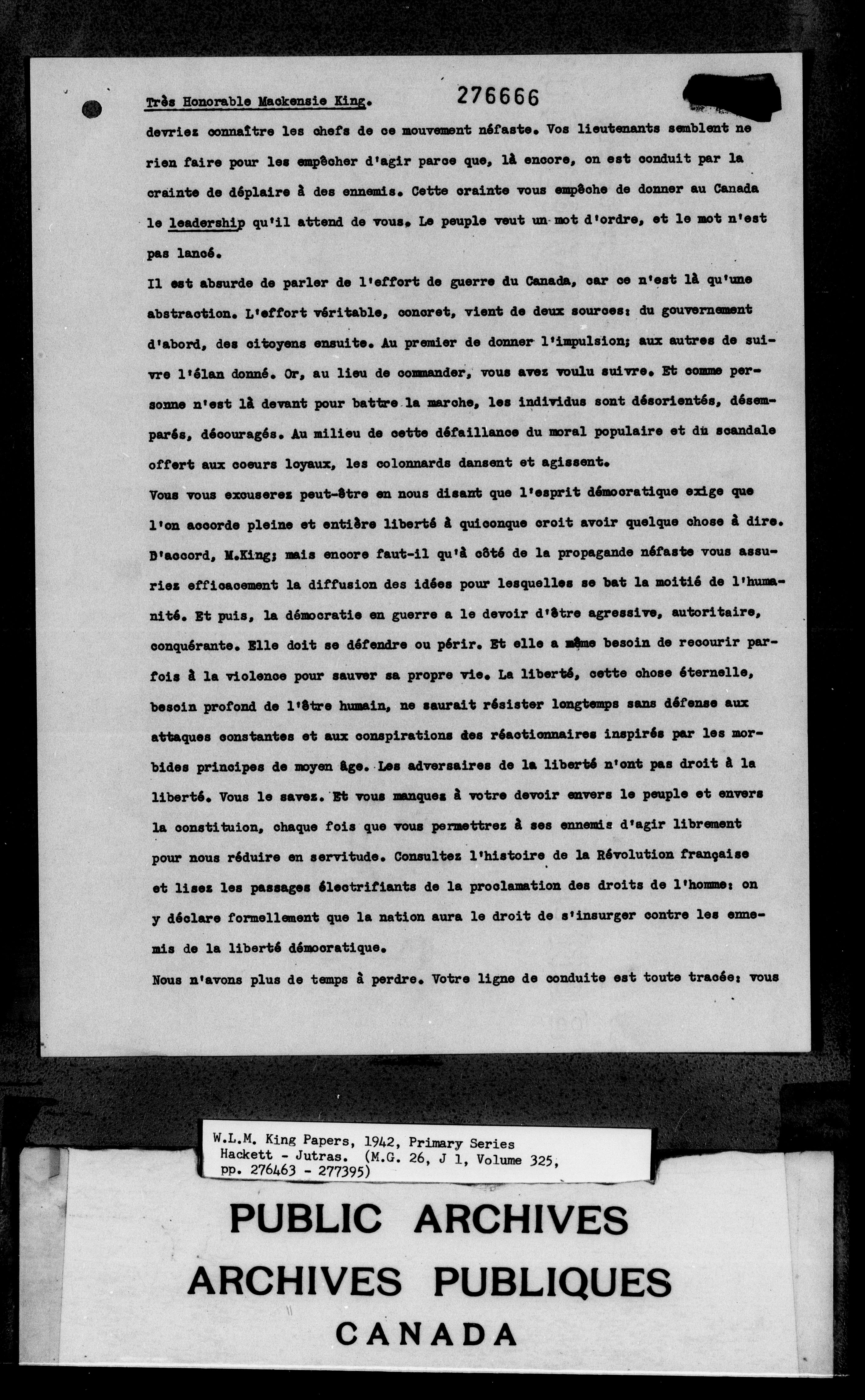 William Lyon Mackenzie King : Primary series correspondence (J1) - 6807