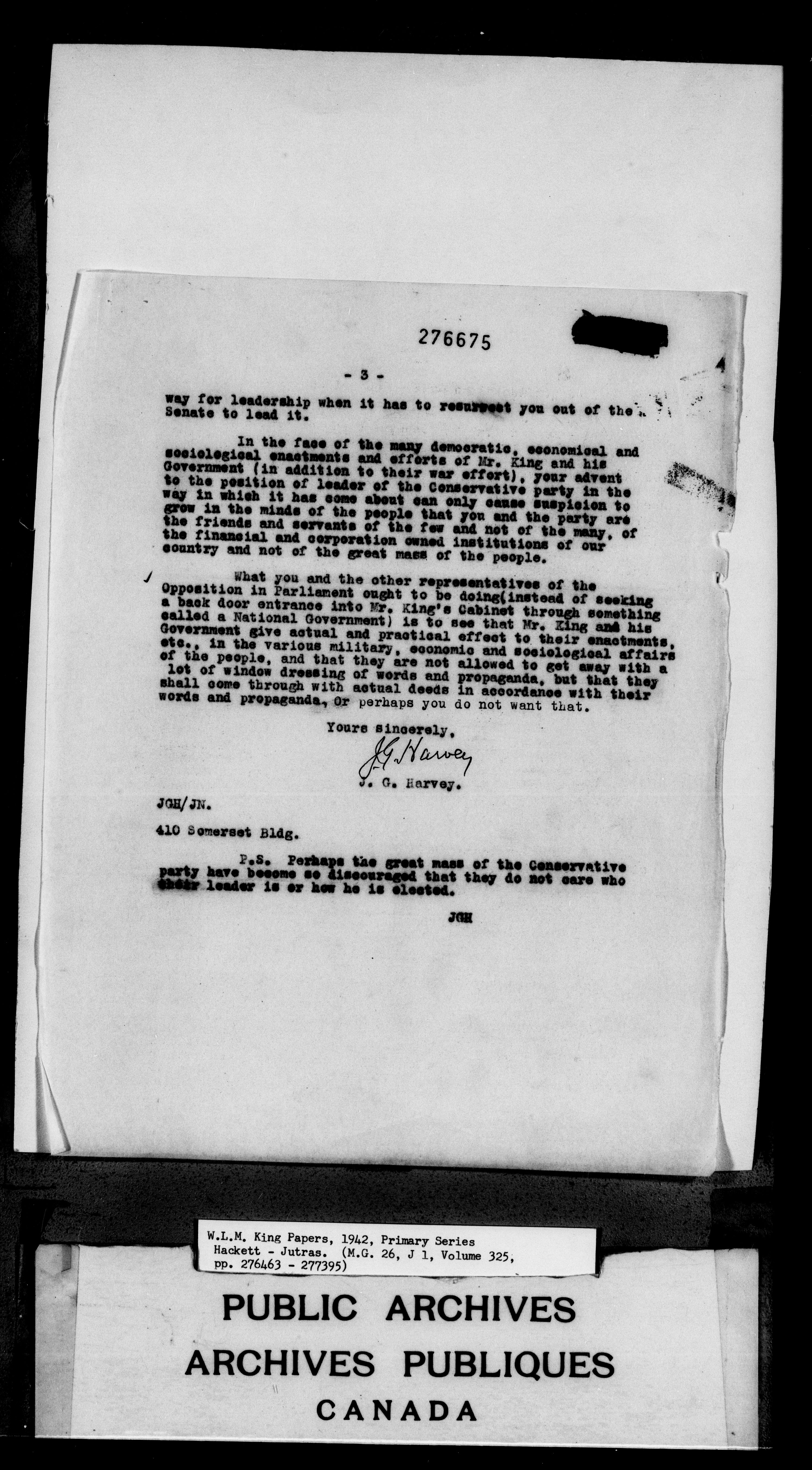 William Lyon Mackenzie King : Primary series correspondence (J1) - 6807