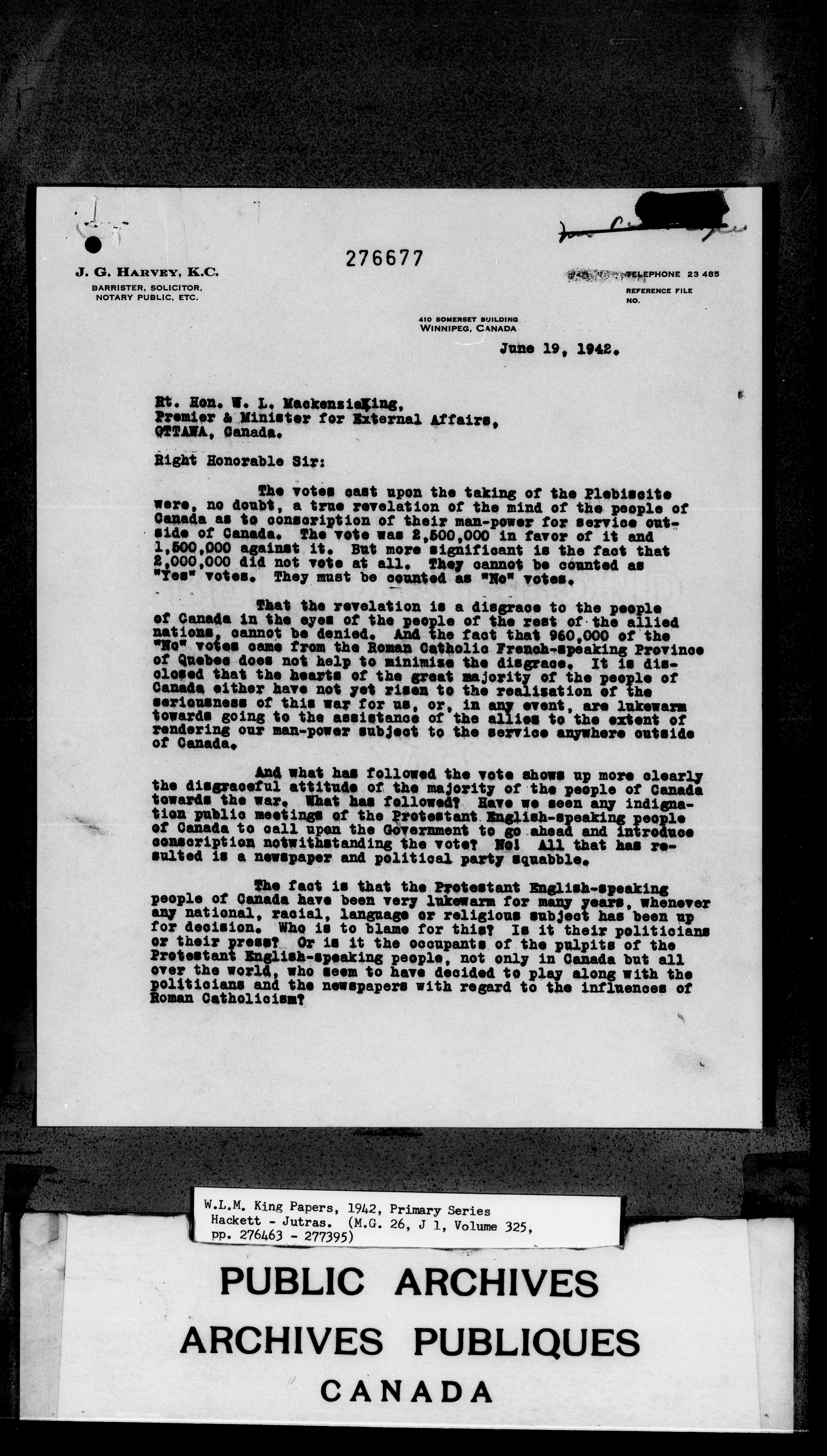 William Lyon Mackenzie King : Primary series correspondence (J1) - 6807