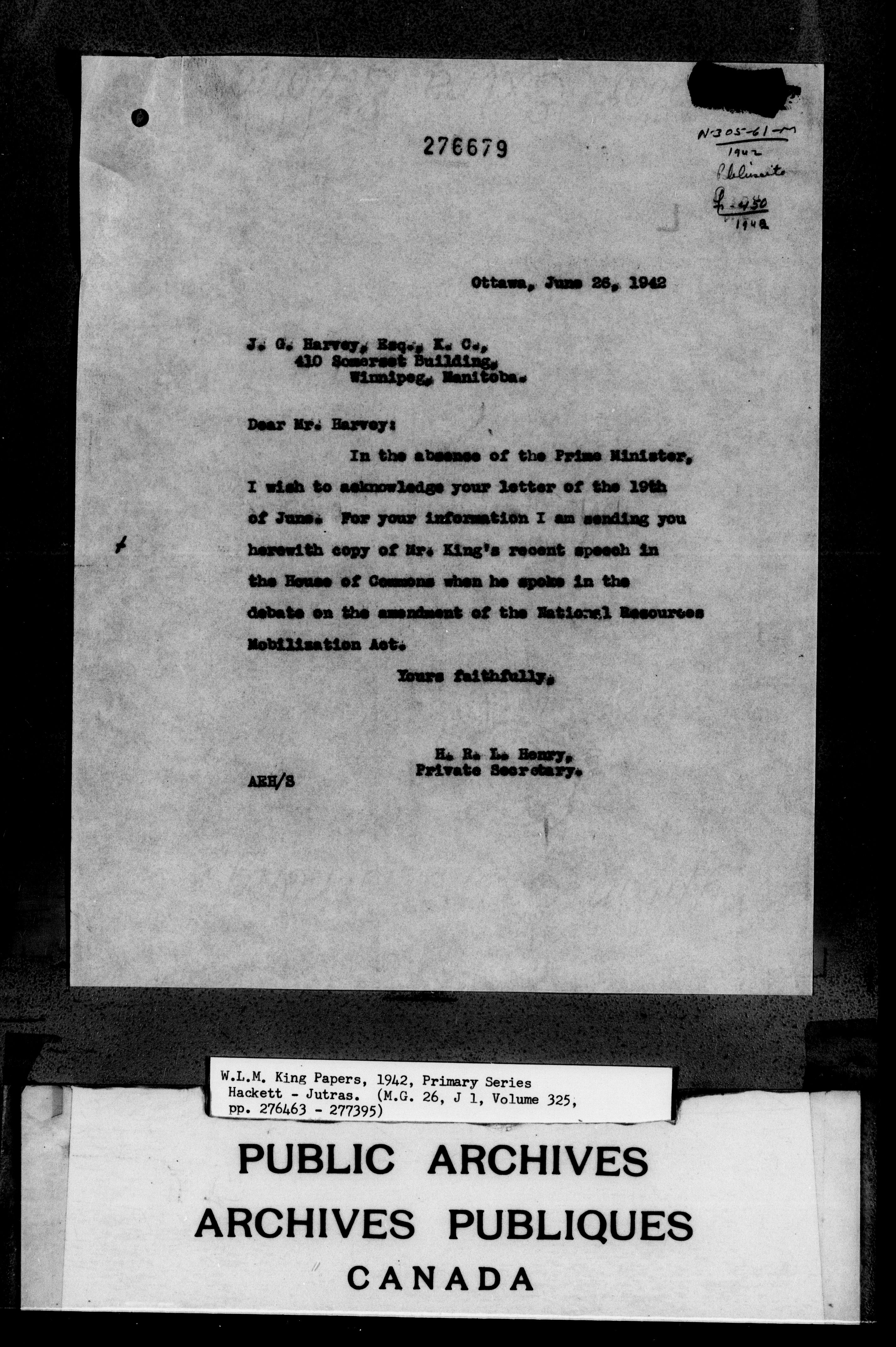 William Lyon Mackenzie King : Primary series correspondence (J1) - 6807