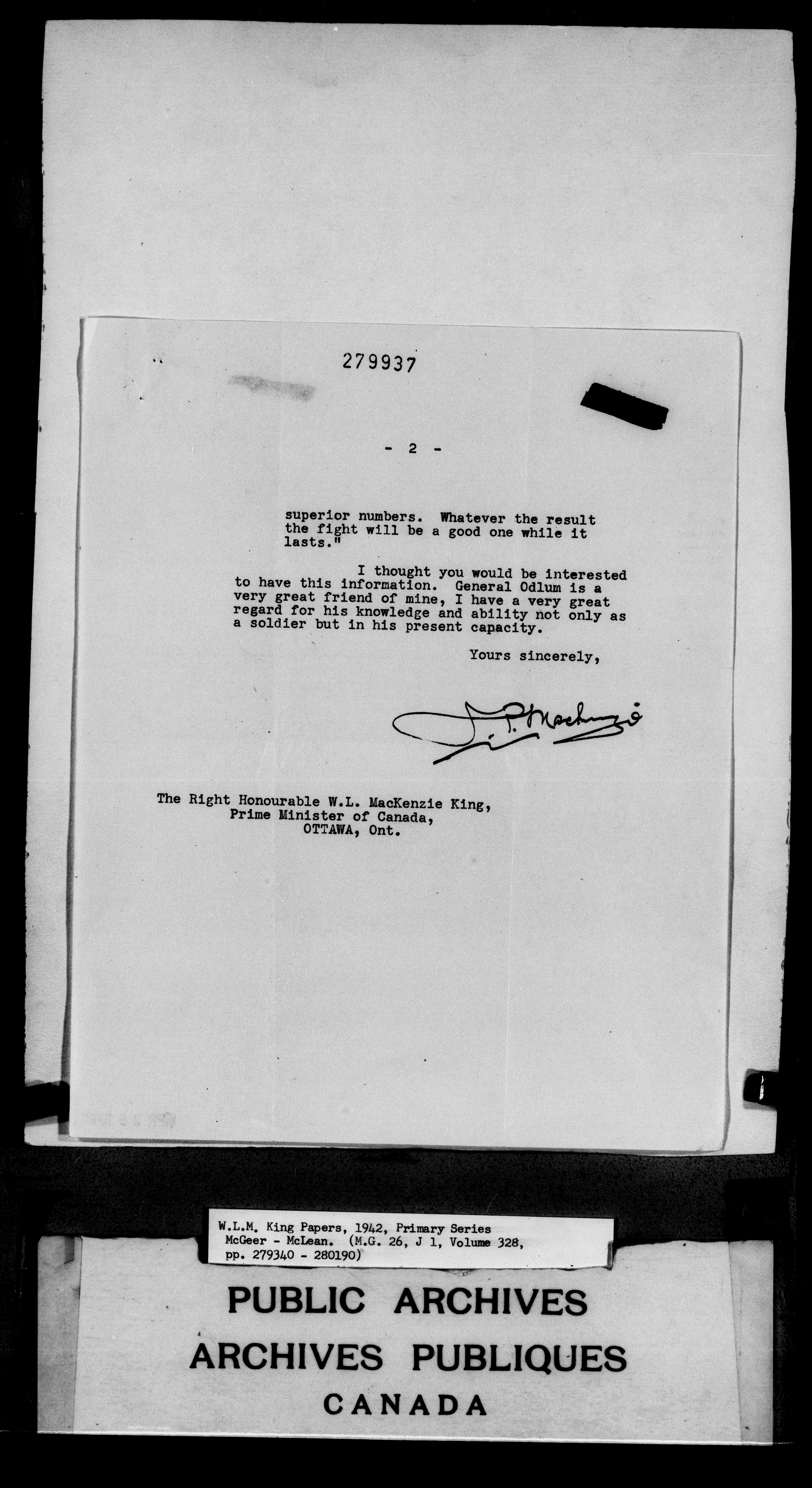 William Lyon Mackenzie King : Primary series correspondence (J1) - 6809