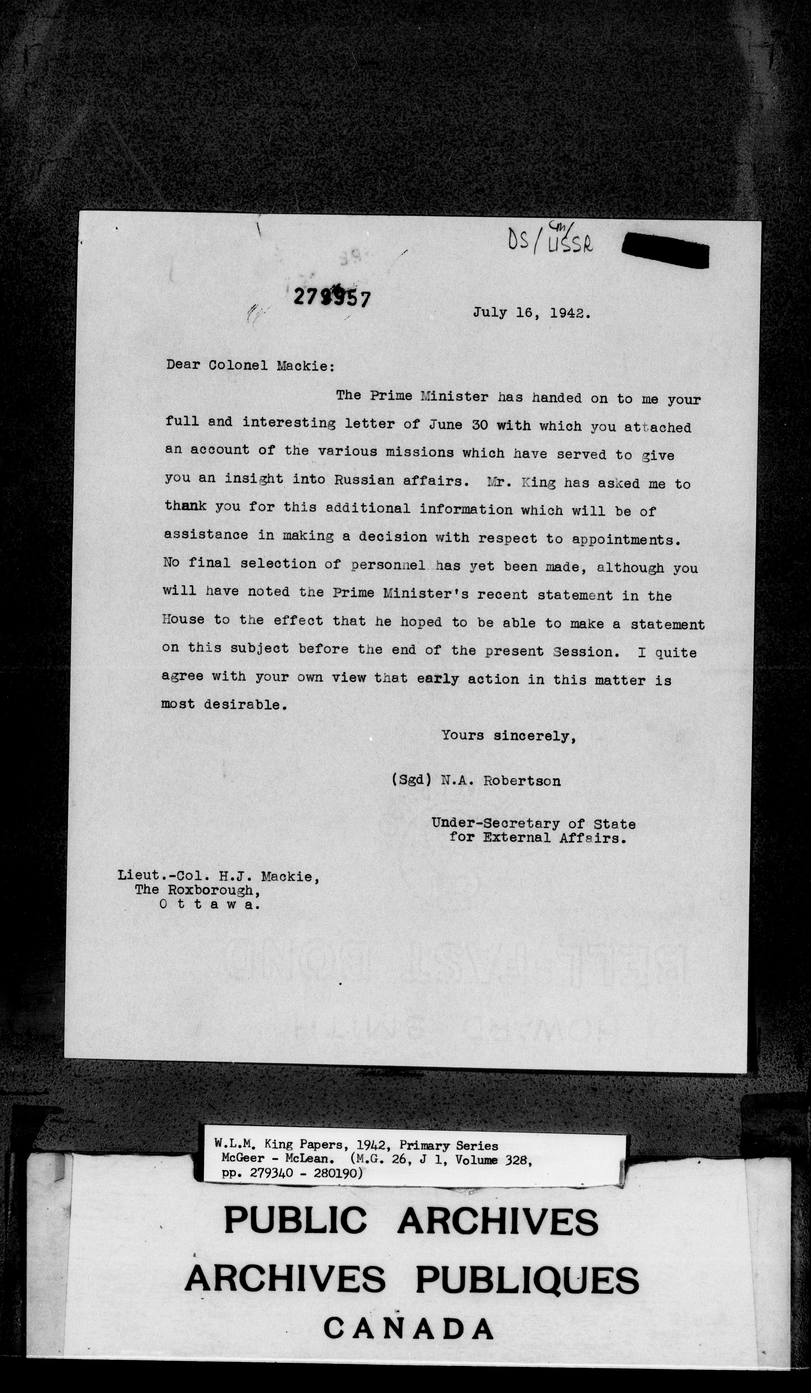 William Lyon Mackenzie King : Primary series correspondence (J1) : C-6809