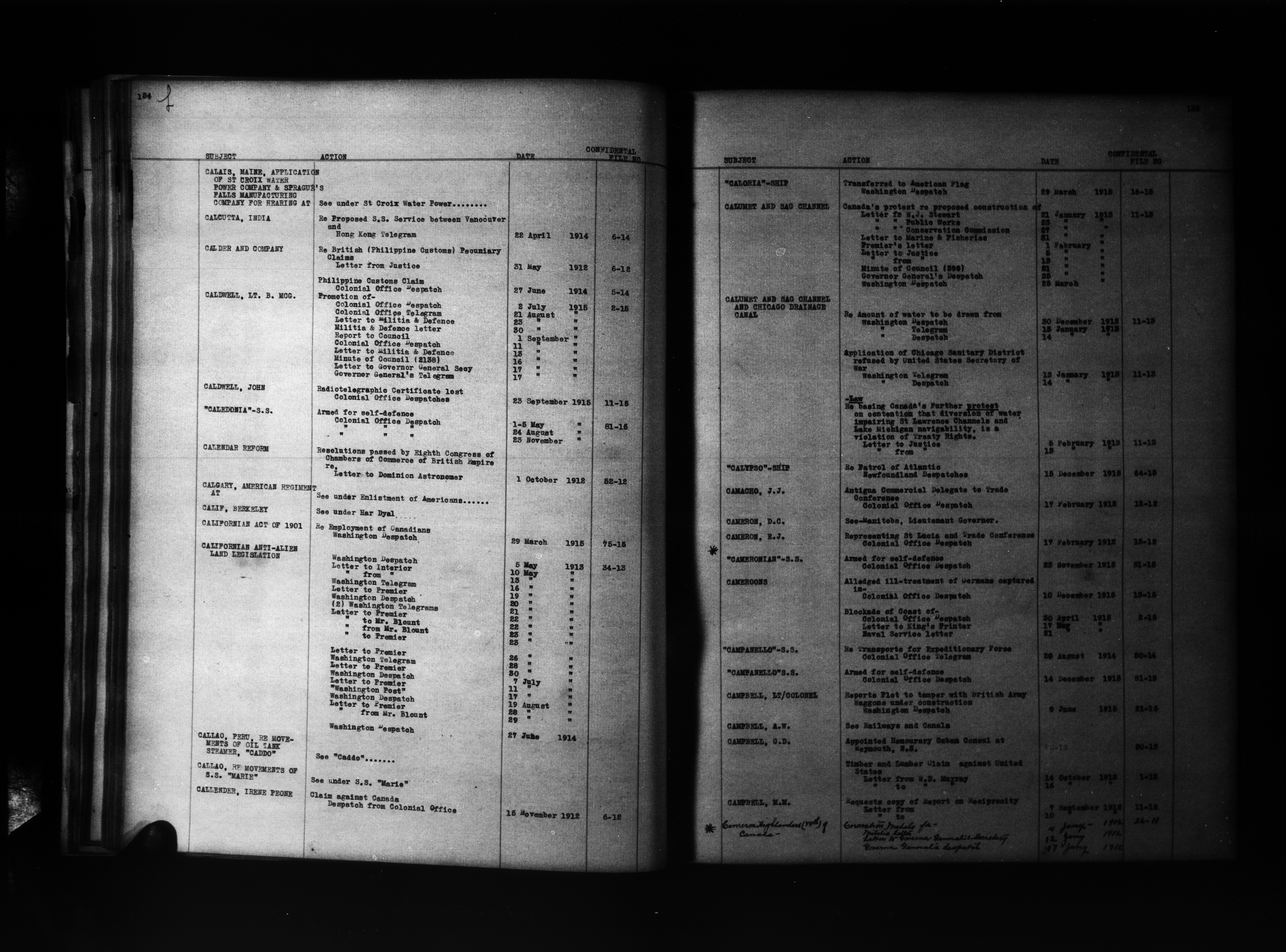 Department of External Affairs: "1939 Series" Central Registry files : Index, 1909-1939 : C-6827