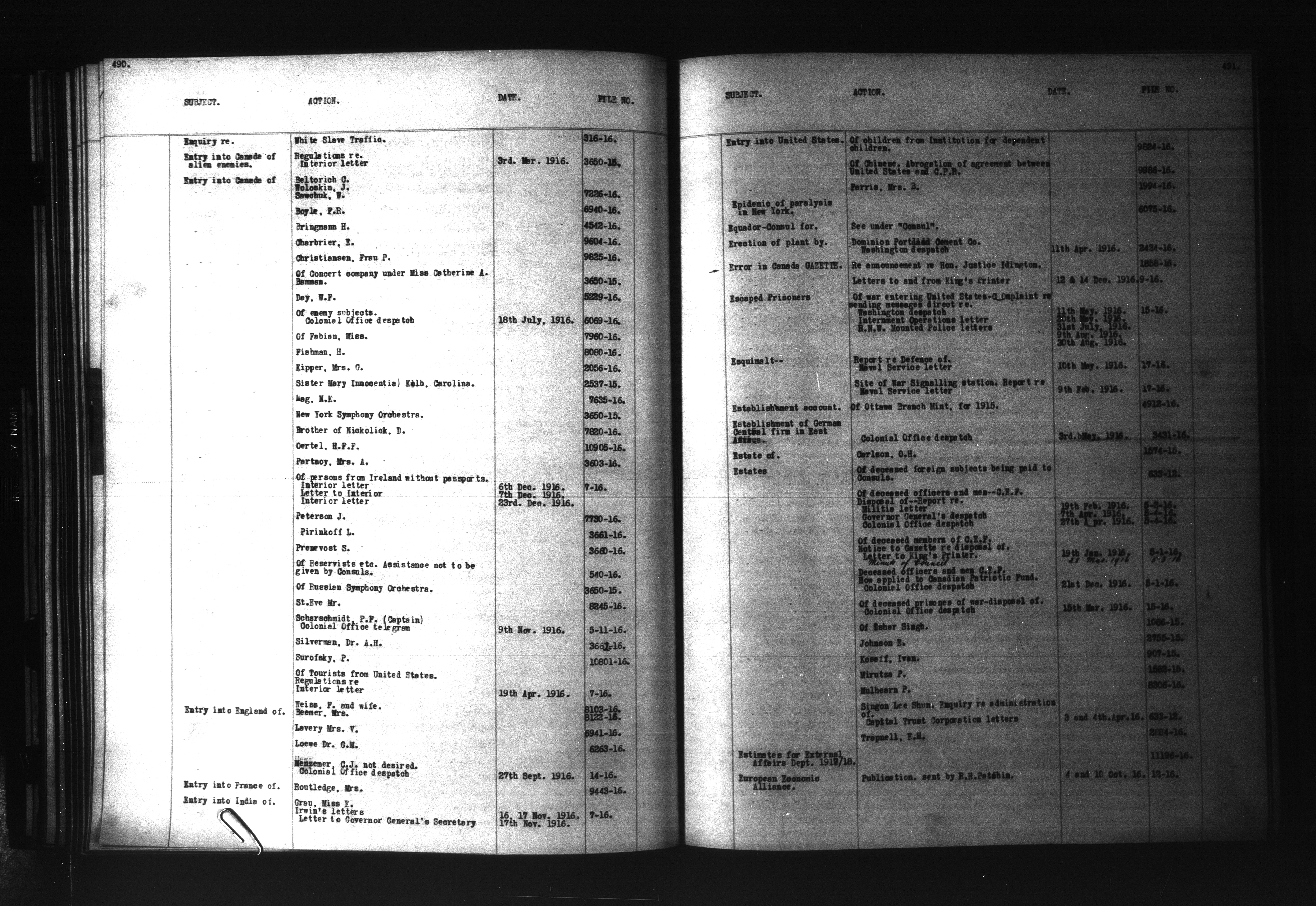 Department of External Affairs: "1939 Series" Central Registry files : Index, 1909-1939 : C-6832