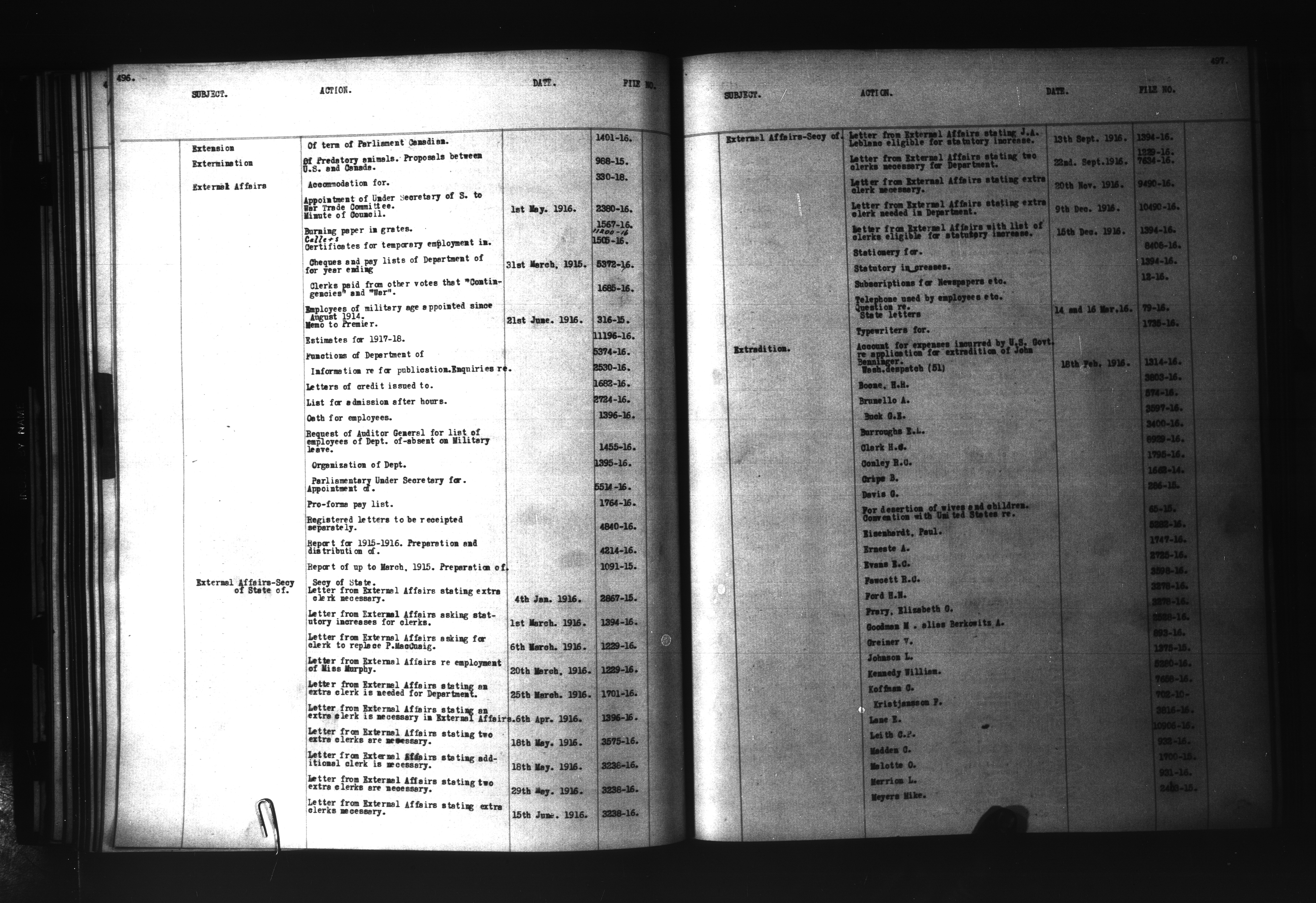 Department of External Affairs: "1939 Series" Central Registry files : Index, 1909-1939 - 6832