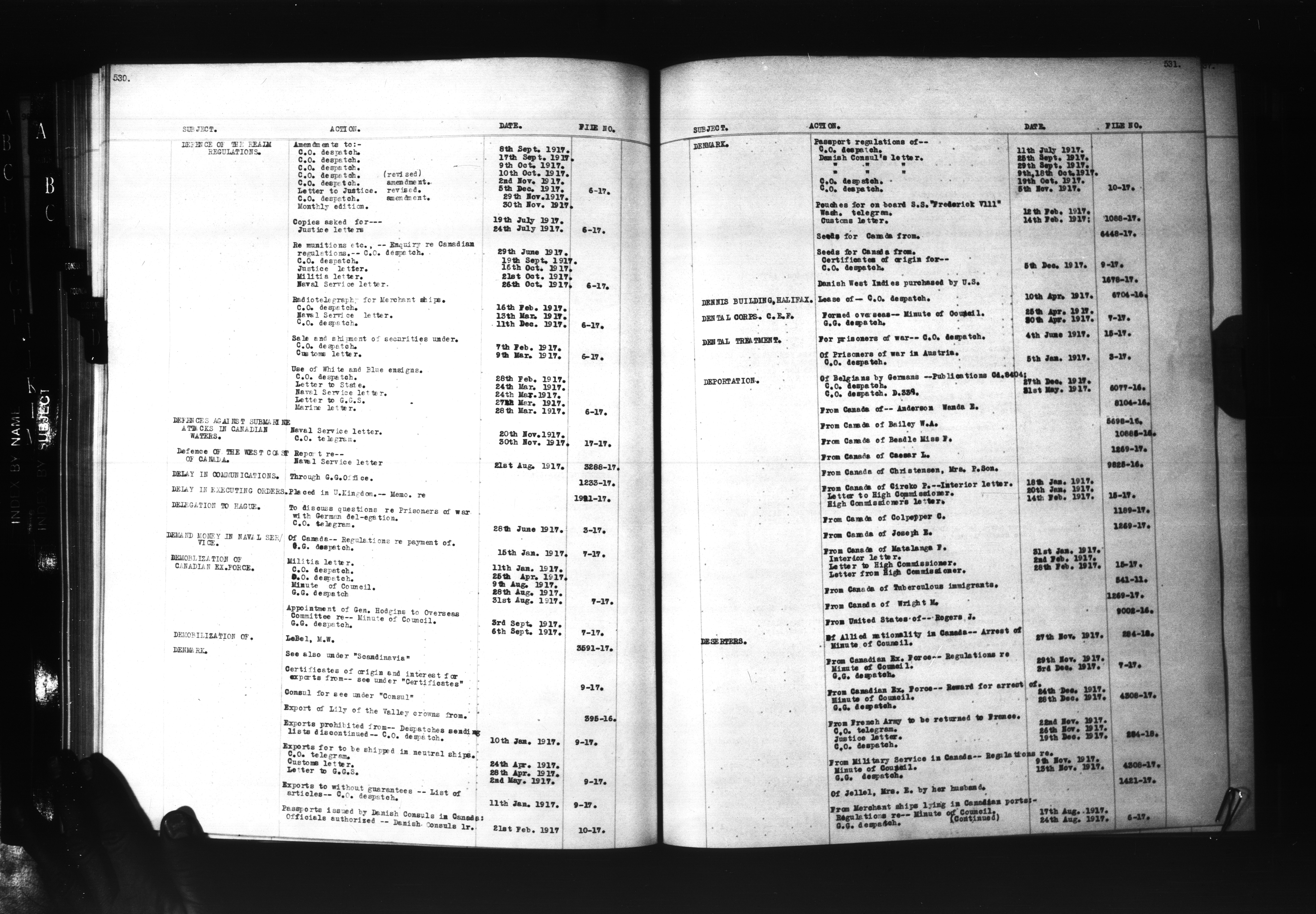 Department of External Affairs: "1939 Series" Central Registry files : Index, 1909-1939 : C-6834
