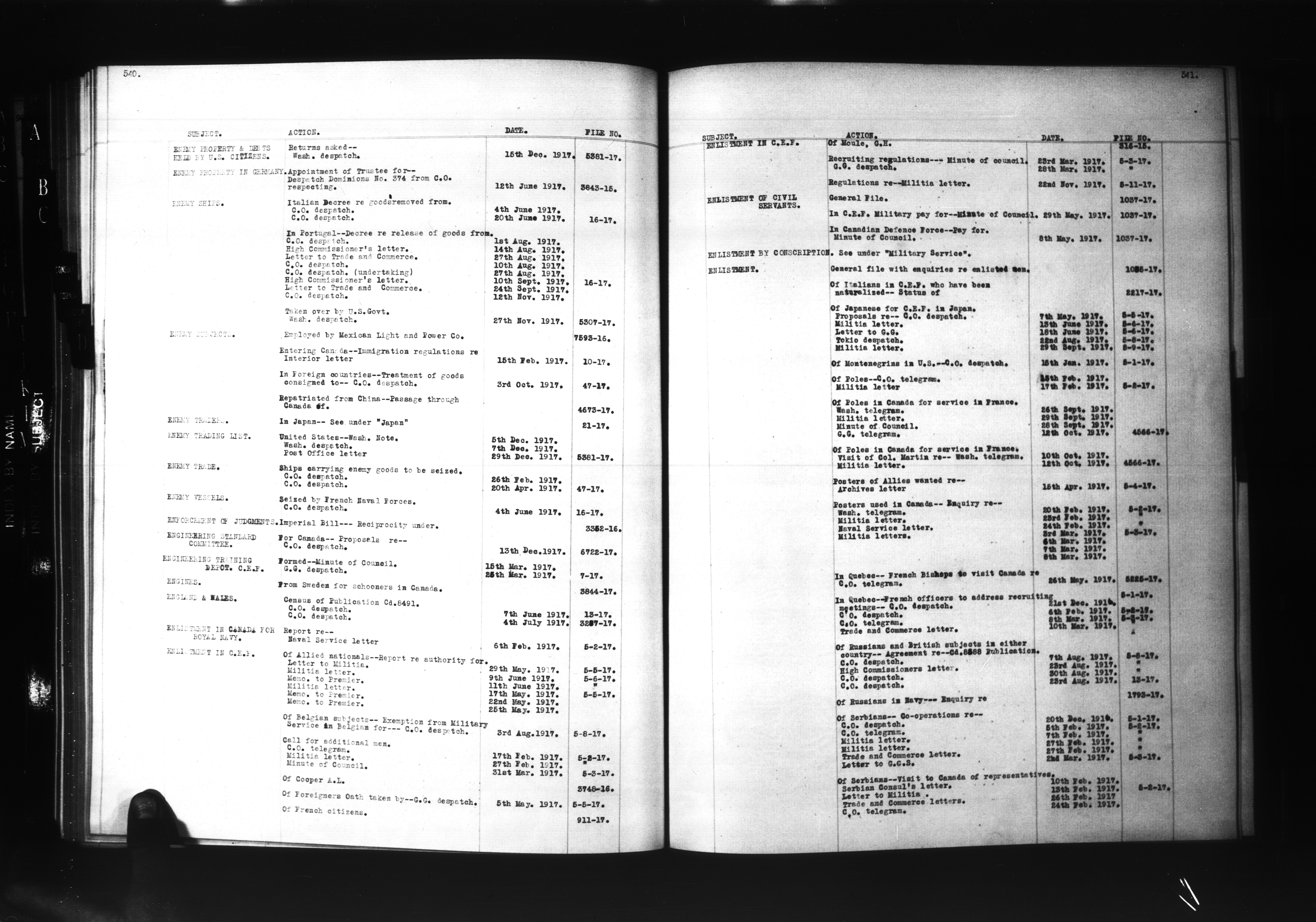 Department of External Affairs: "1939 Series" Central Registry files : Index, 1909-1939 : C-6834