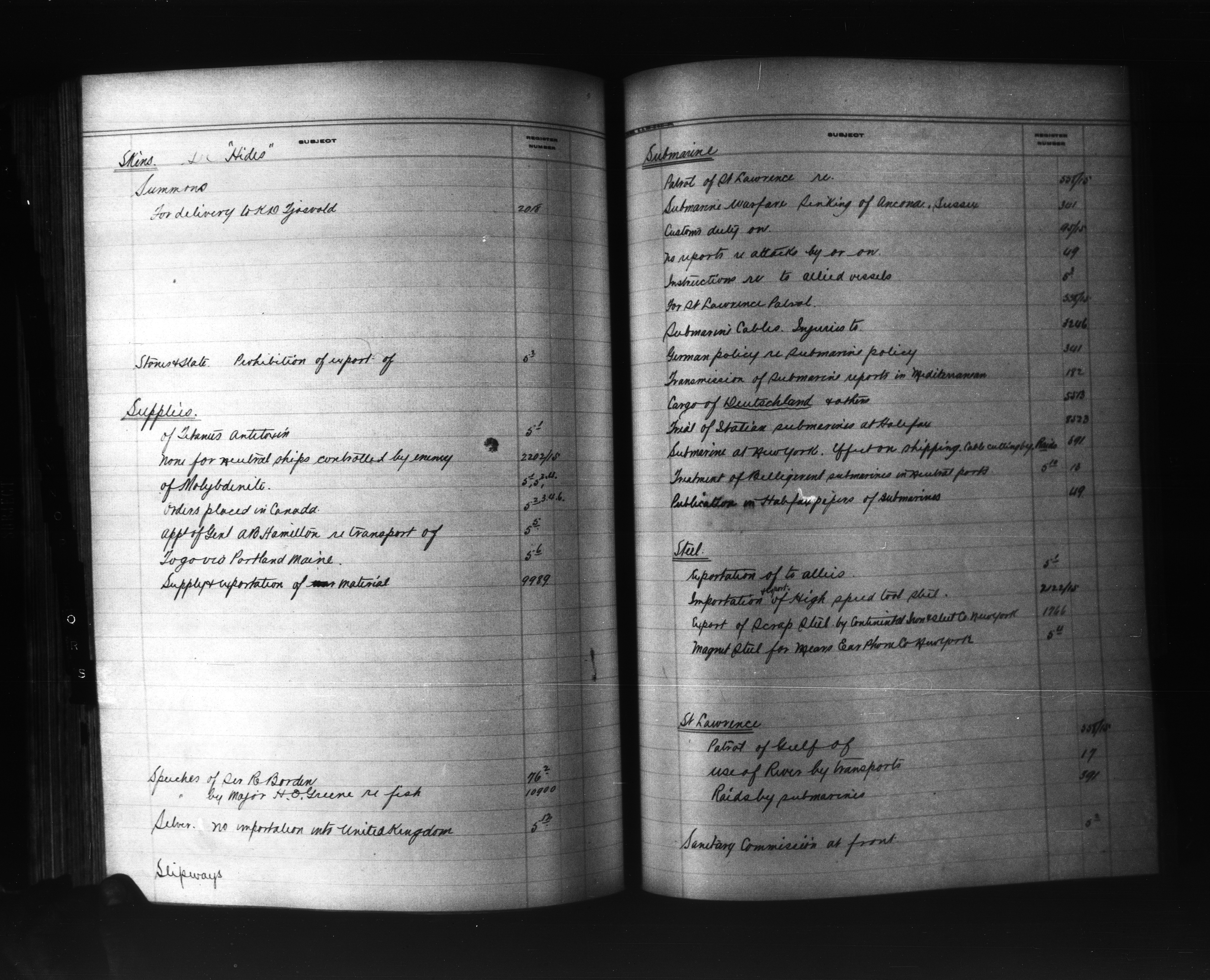 Department of External Affairs: "1939 Series" Central Registry files : Index, 1909-1939 - 6834