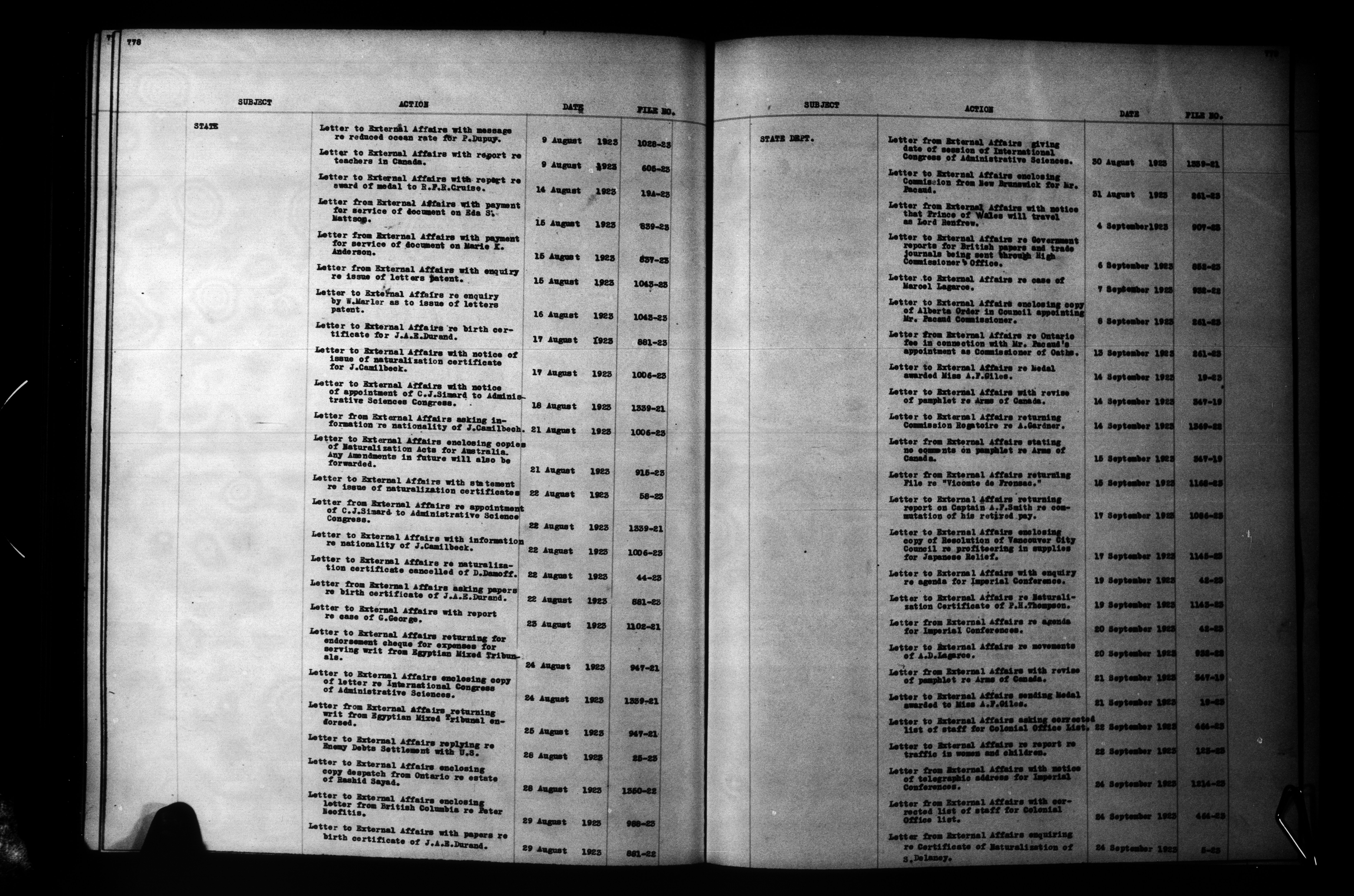 Department of External Affairs: "1939 Series" Central Registry files : Index, 1909-1939 - 6840