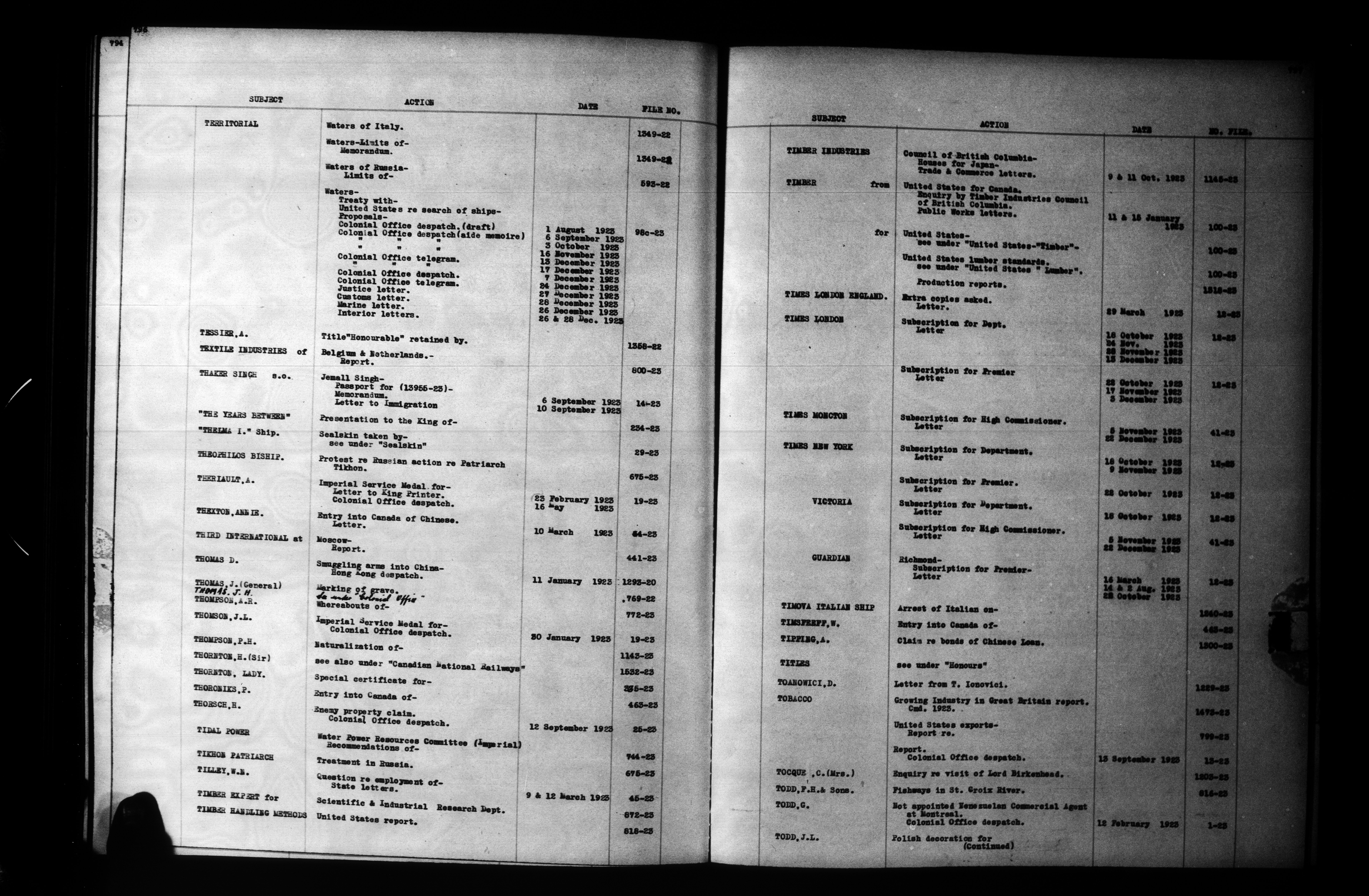 Department of External Affairs: "1939 Series" Central Registry files : Index, 1909-1939 : C-6840