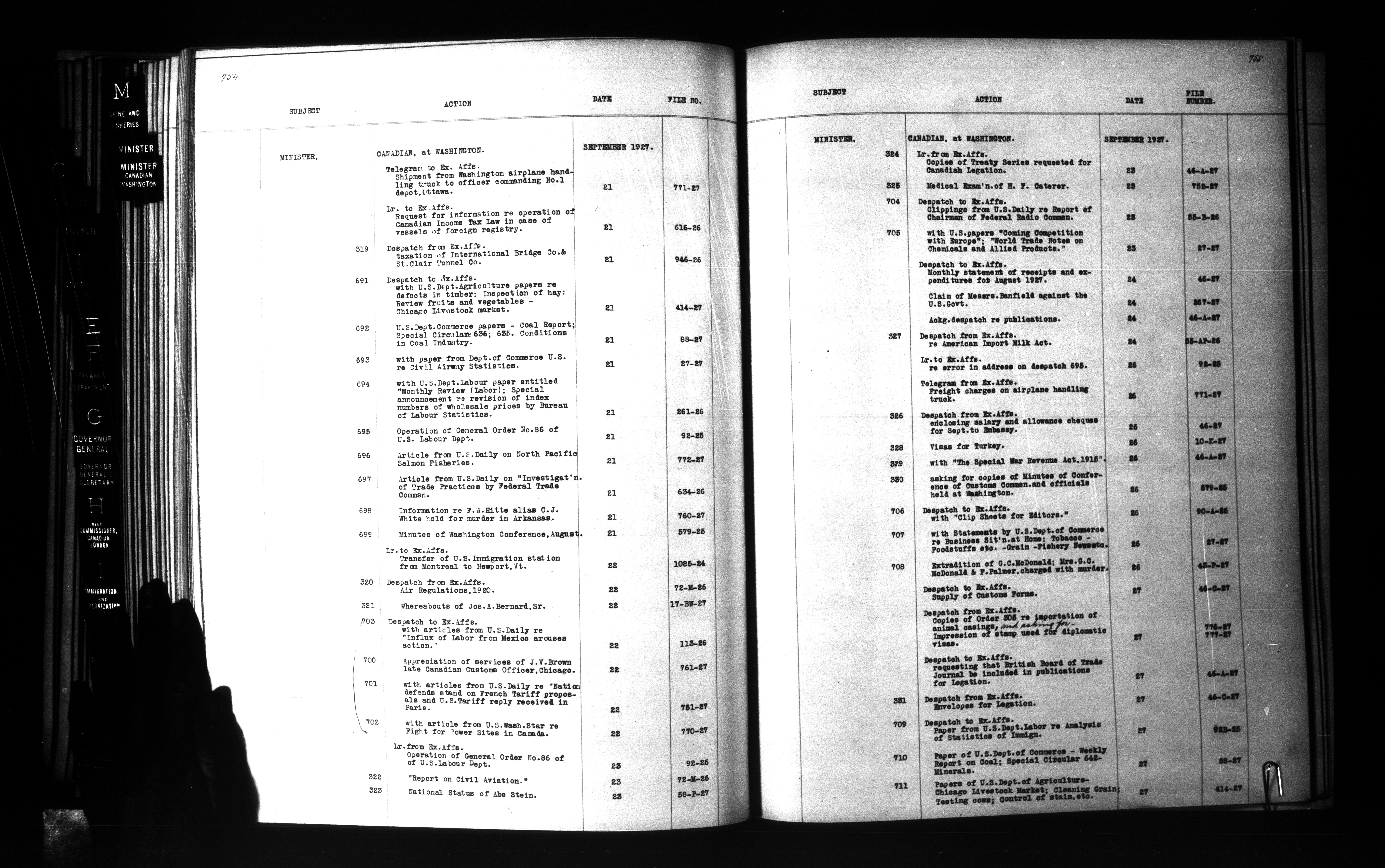 Department of External Affairs: "1939 Series" Central Registry files : Index, 1909-1939 - 6844