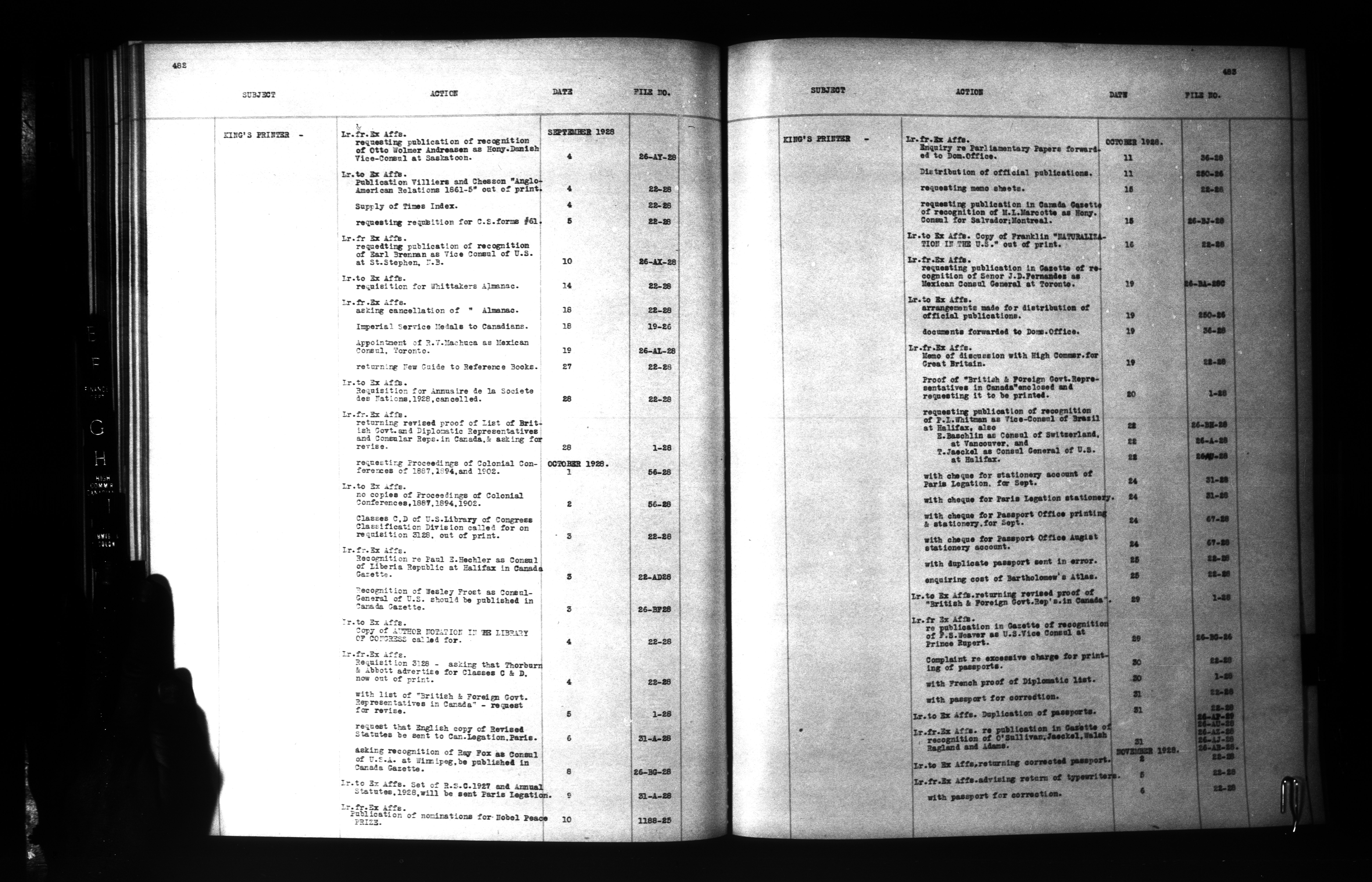 Department of External Affairs: "1939 Series" Central Registry files : Index, 1909-1939 - 6844