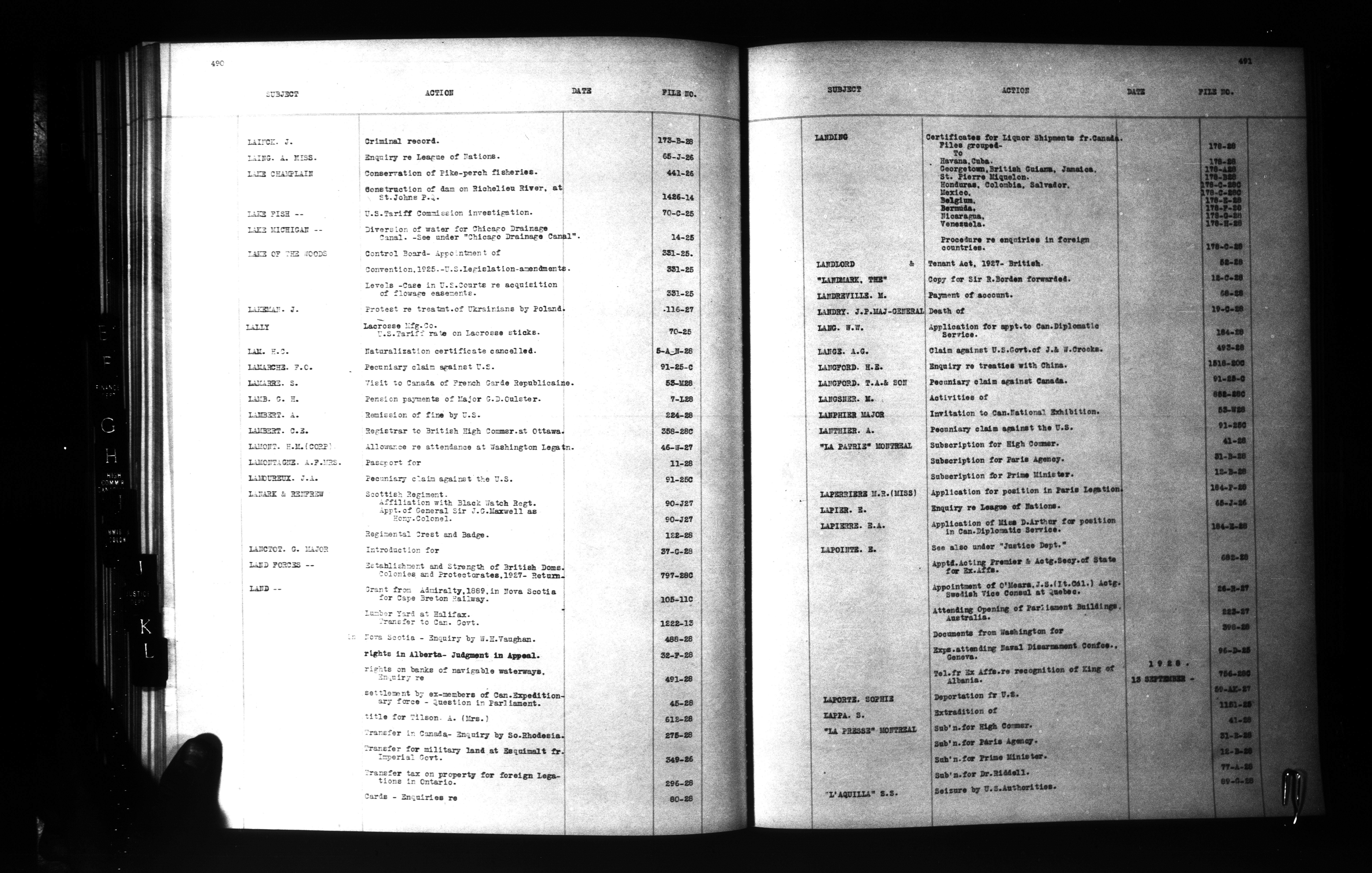 Department of External Affairs: "1939 Series" Central Registry files : Index, 1909-1939 - 6844