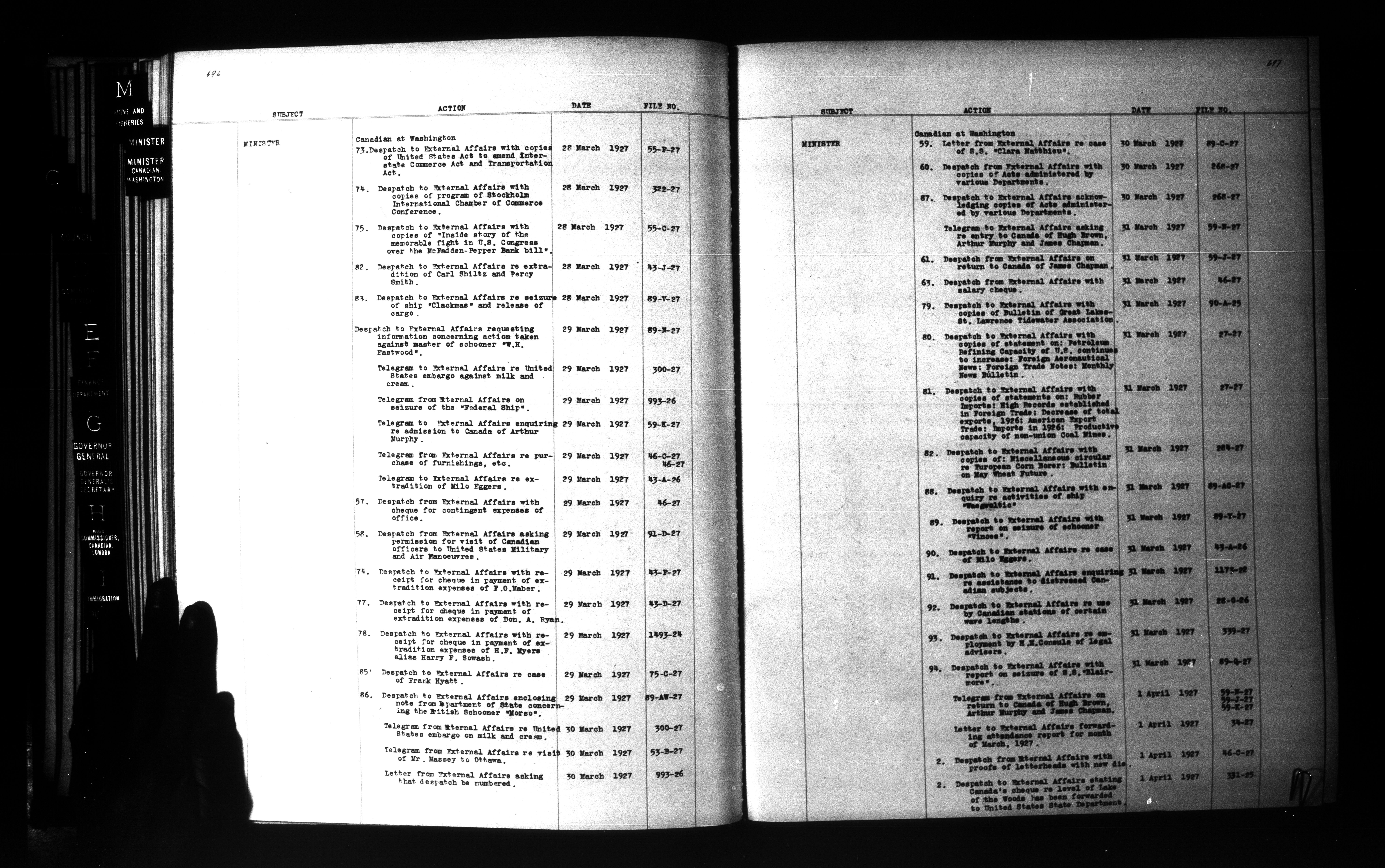 Department of External Affairs: "1939 Series" Central Registry files : Index, 1909-1939 - 6844