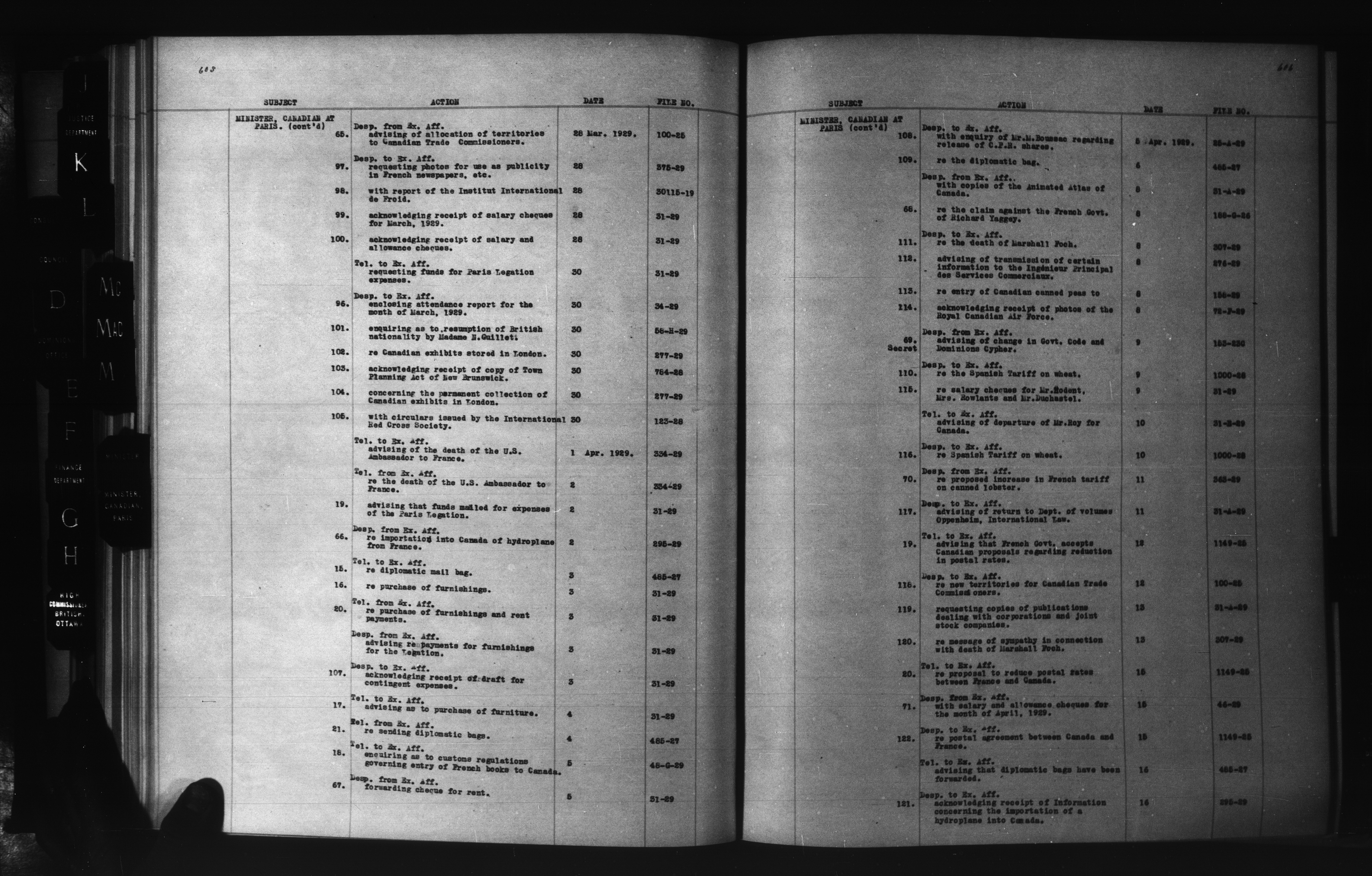 Department of External Affairs: "1939 Series" Central Registry files : Index, 1909-1939 - 6846