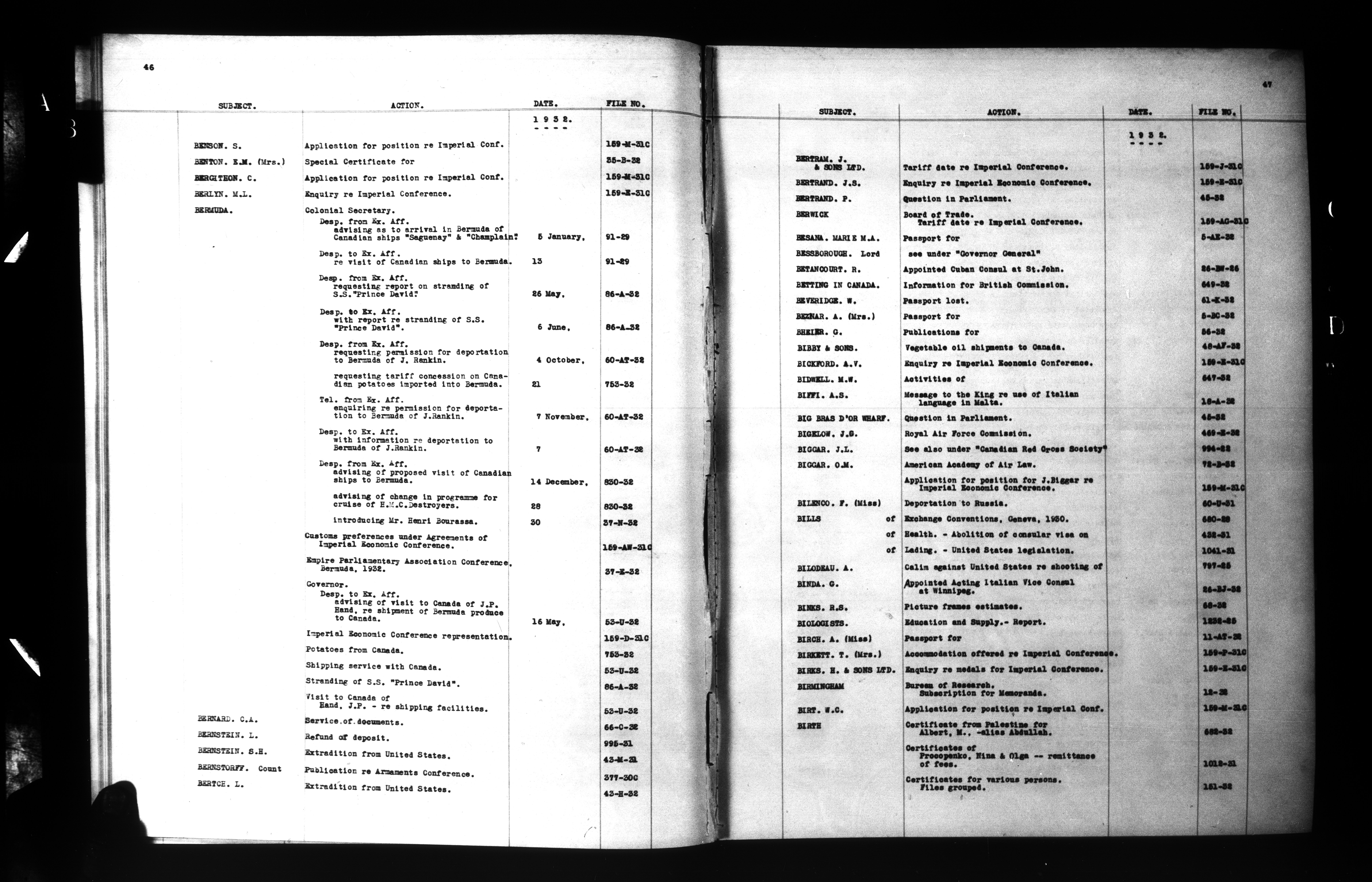 Department of External Affairs: "1939 Series" Central Registry files : Index, 1909-1939 - 6848